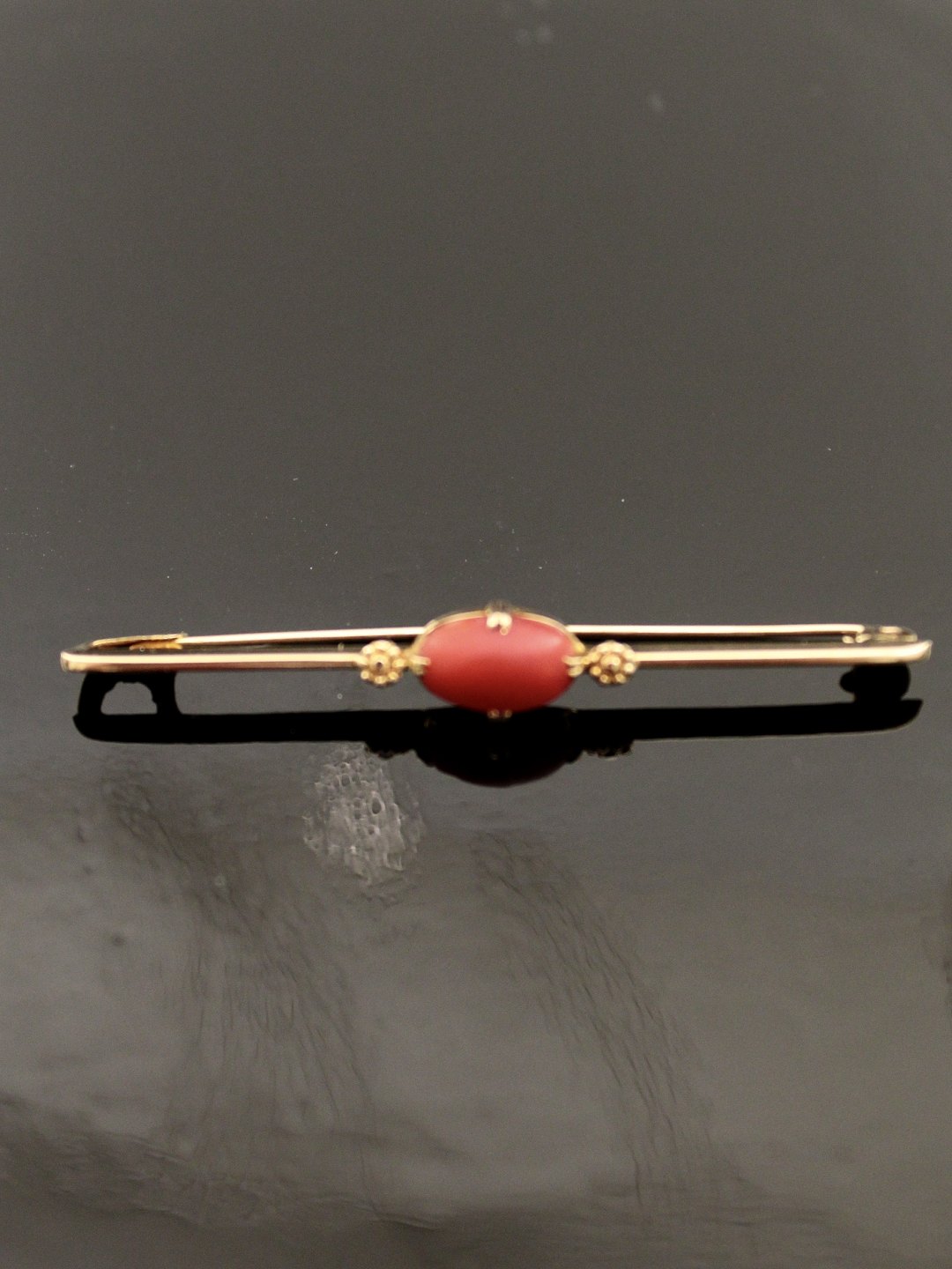 14 karat guld stav broche 5,2 cm. med koral emne nr. 484784