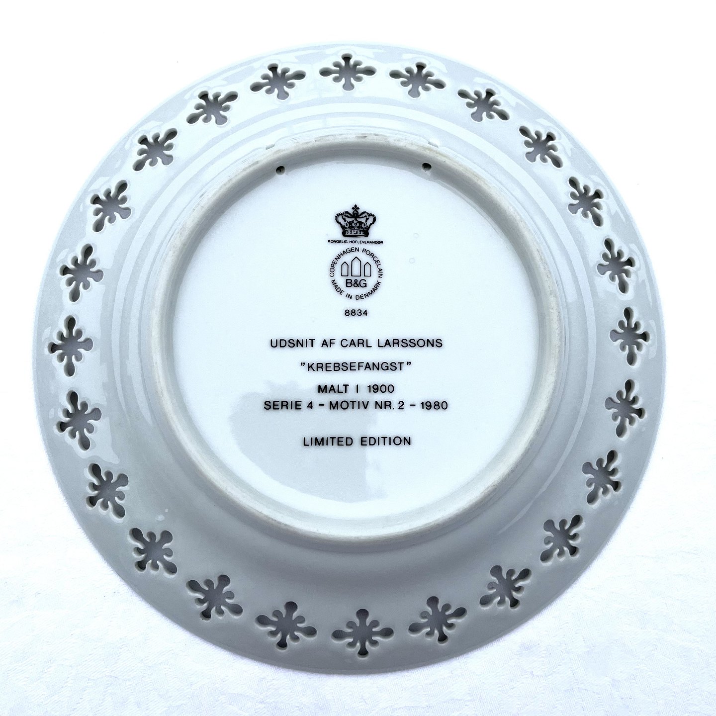 | Bing & Gröndahl, Carl Larsson, Teller, „Crayfish catch“, Serie 4, Motiv Nr. 2, 21,5 cm Durchmesser * Perfekter Zustand *