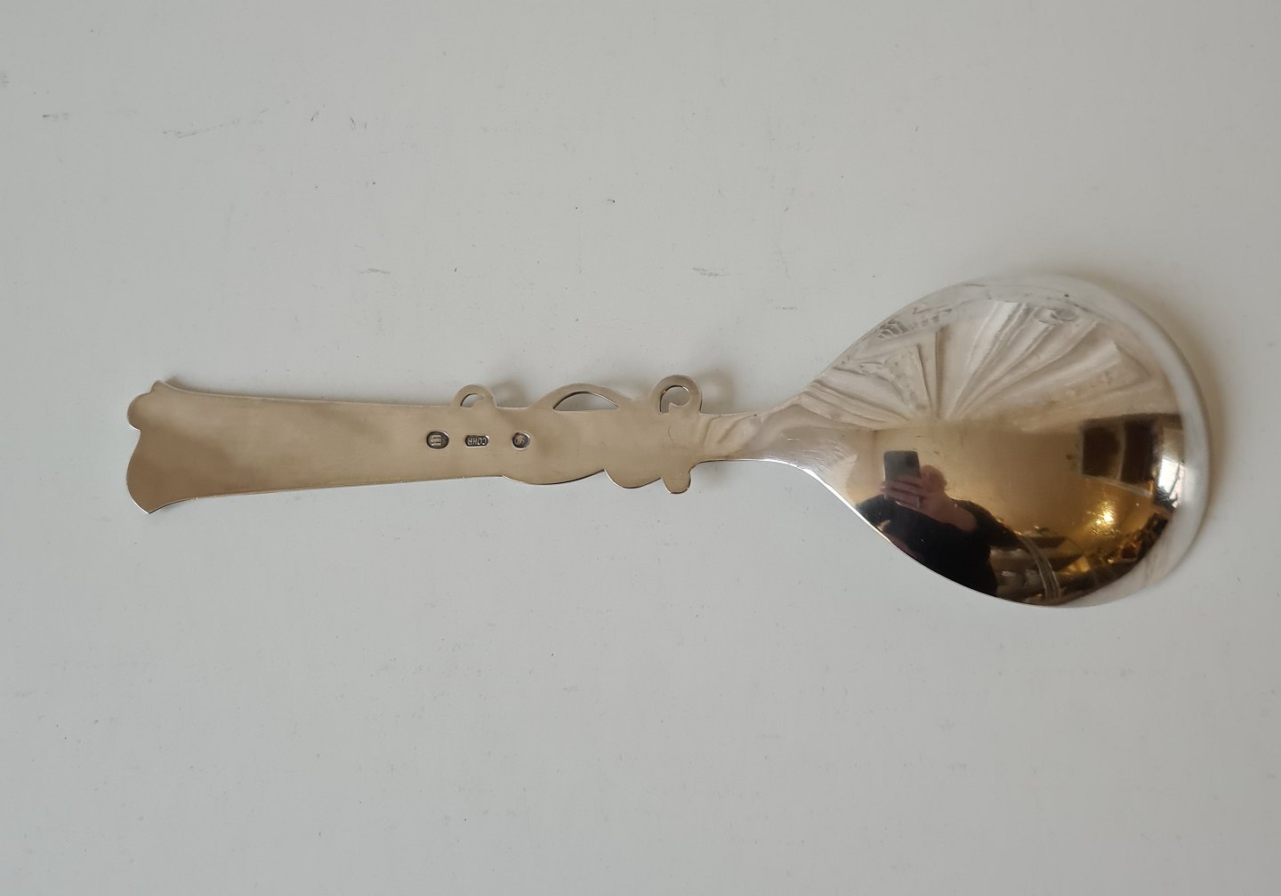 Stor smuk serveringsske i sølv fra 1950 - 21,8 cm.
