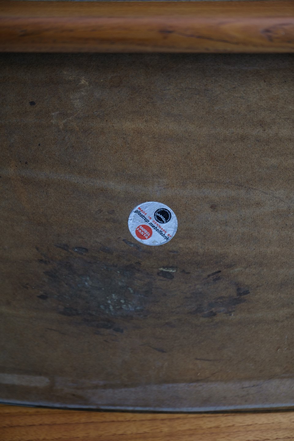 Armstol, model GM11 med stel af massiv teaktræ designet af Svend Åge Eriksen fremstillet af Glostrup Møbelfabrik i 1962. Stolen er efterset på værksted inden eventuelt levering.