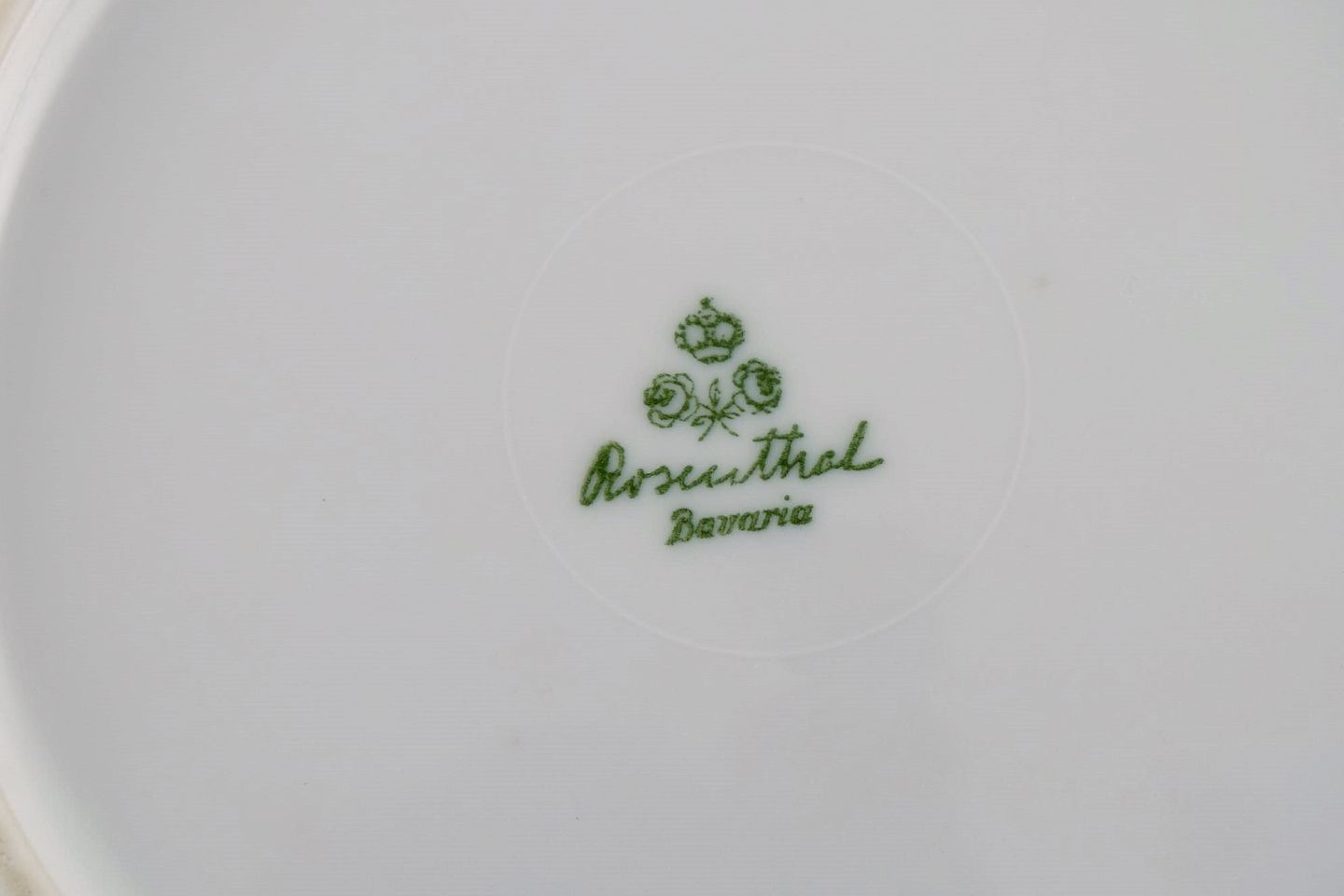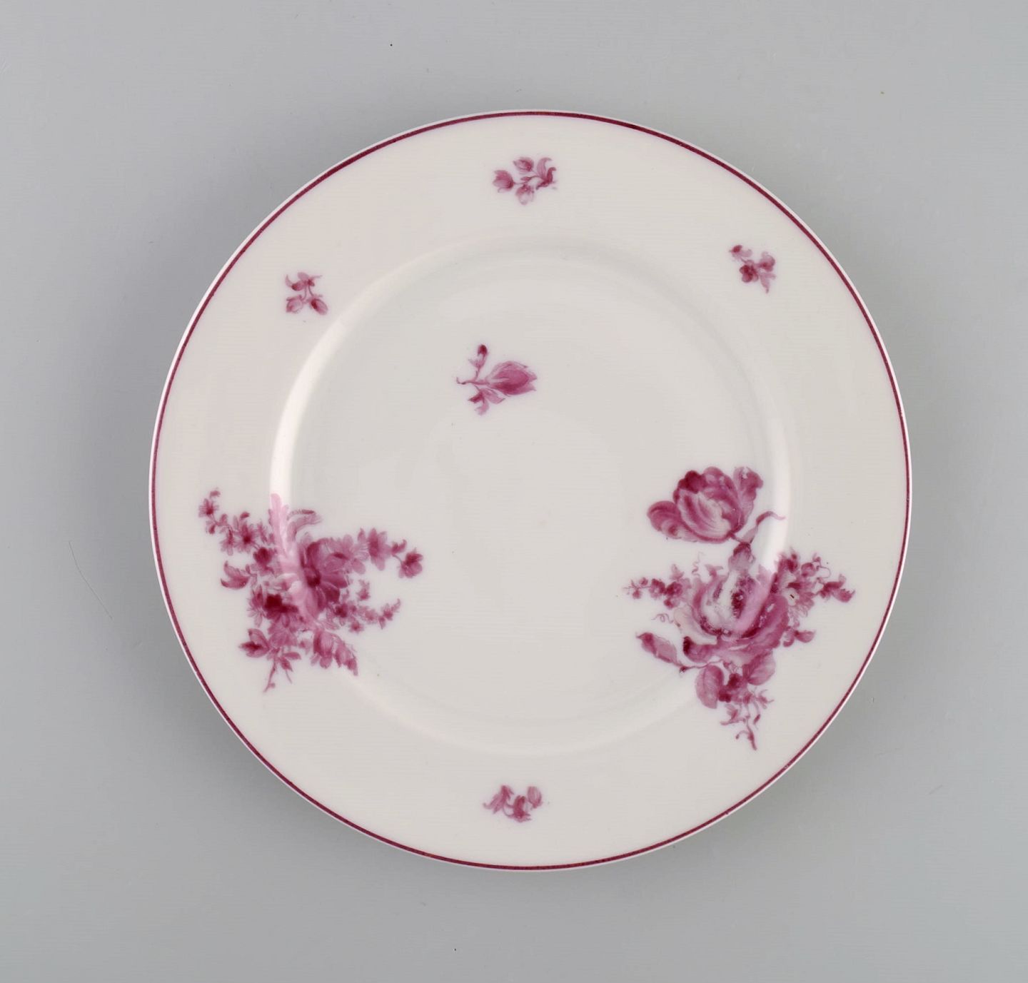 Fire Rosenthal tallerkener i håndmalet porcelæn. Lyserøde blomster og kant. 1930/40'erne.