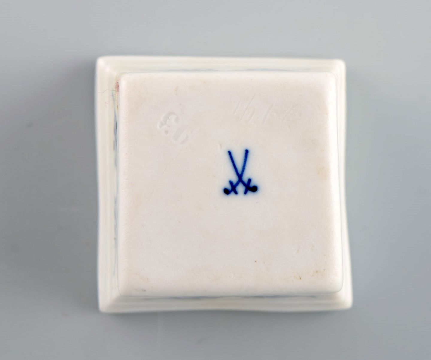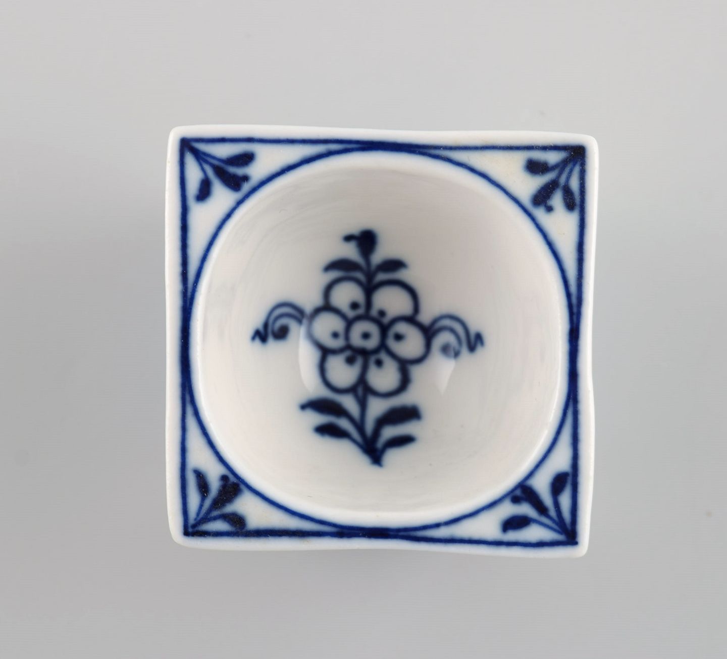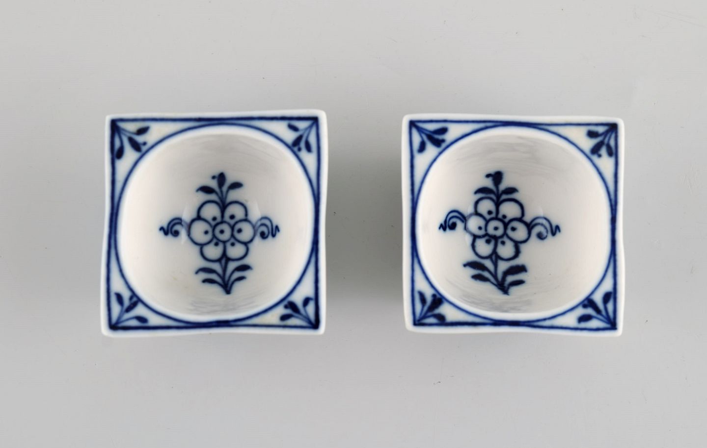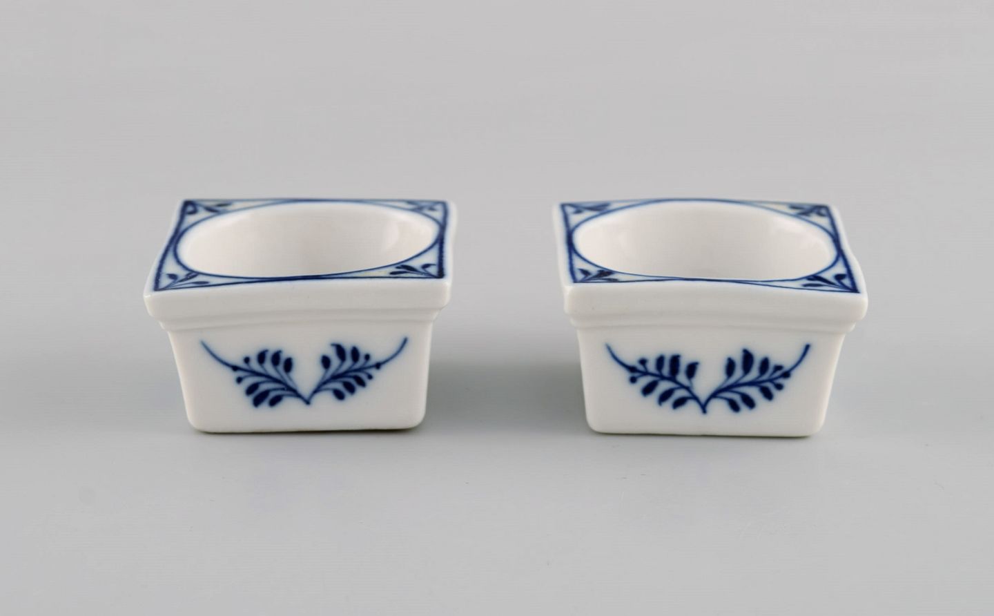 To antikke Meissen Løgmønstret saltkar i håndmalet porcelæn. Ca. 1900.