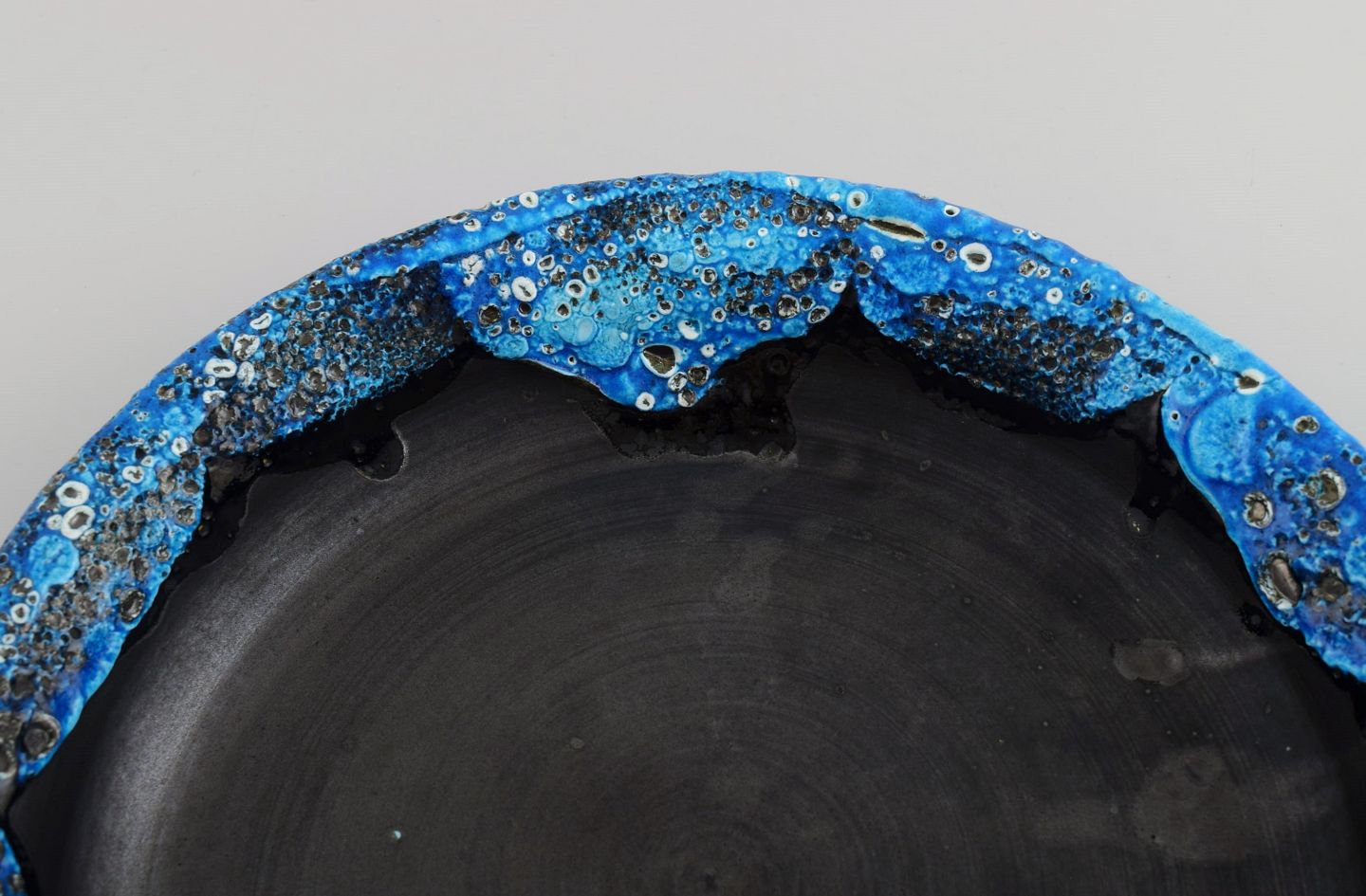 Text zugänglich auf Dänische: Fransk keramiker. To runde serveringsfade / skåle i glaseret stentøj. Smuk glasur i azurblå nuancer. Unika keramik af høj kvalitet. Midt 1900-tallet.