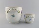 Text zugänglich auf Dänische: Meissen vinkøler og vase i håndmalet porcelæn med blomster og guldkant. Hanke modeleret som grene. Tidligt 1900-tallet.