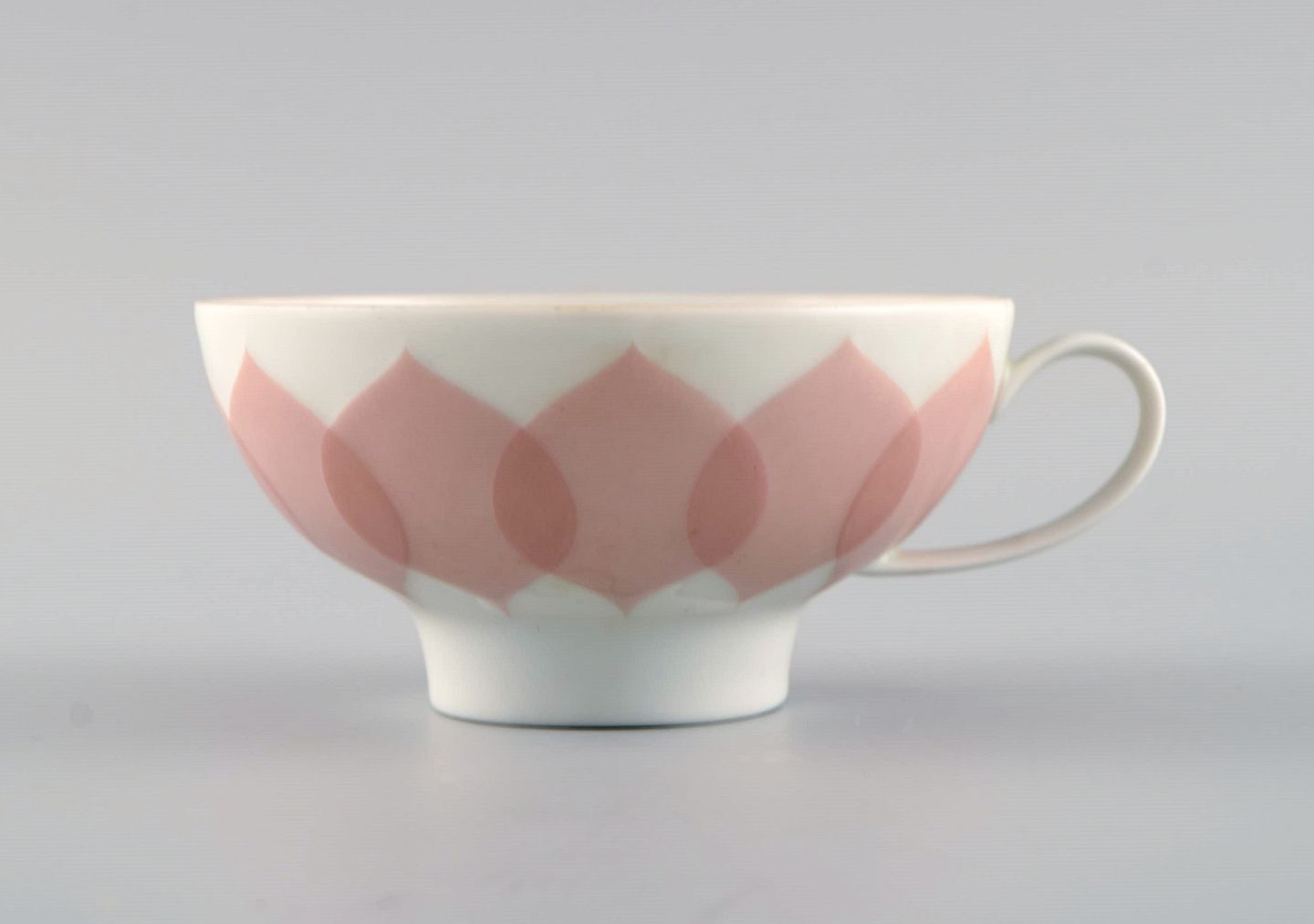 Text zugänglich auf Dänische: Bjørn Wiinblad for Rosenthal. Lotus porcelænsservice. 9 tekopper med underkopper dekoreret med lyserøde lotusblade. 1980'erne.