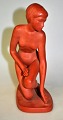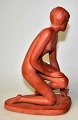Gmunder Keramik Kniende Frau beim Blumenpflücken, 2539. Österreich. Gestempelt. Gemalte Rottöne. Höhe.: 23 cm.
