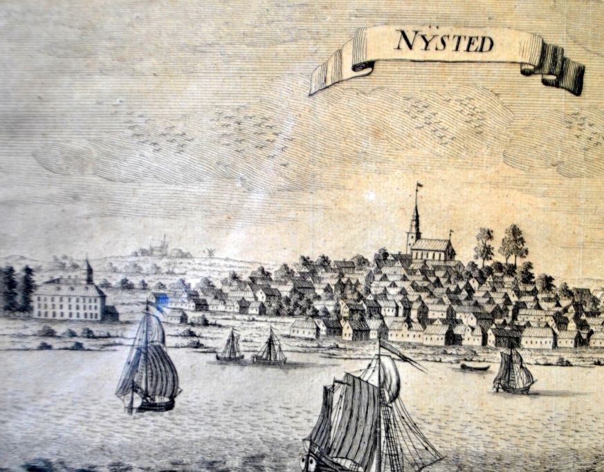 Haas, Jonas (1720 - 1775) Dänemark: Prospekt über Nysted, 1767. Dänemark. Kupferstick. Aus dem dänischen Atlas von Pontoppidan. Unterzeichnet. 19 x 26,5 cm.