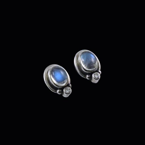 Richard Axel Balle. Øreringe i sterling sølv med månesten og brillanter.