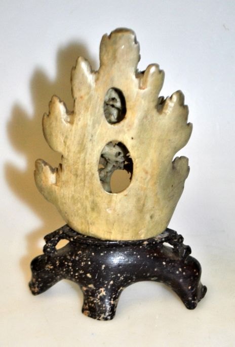Chinesische Specksteinfigur 19./20. Jh. Dekoration in Form einer Blume. H.: 15,5 cm. B.: 11 cm. Perfekter Zustand!
