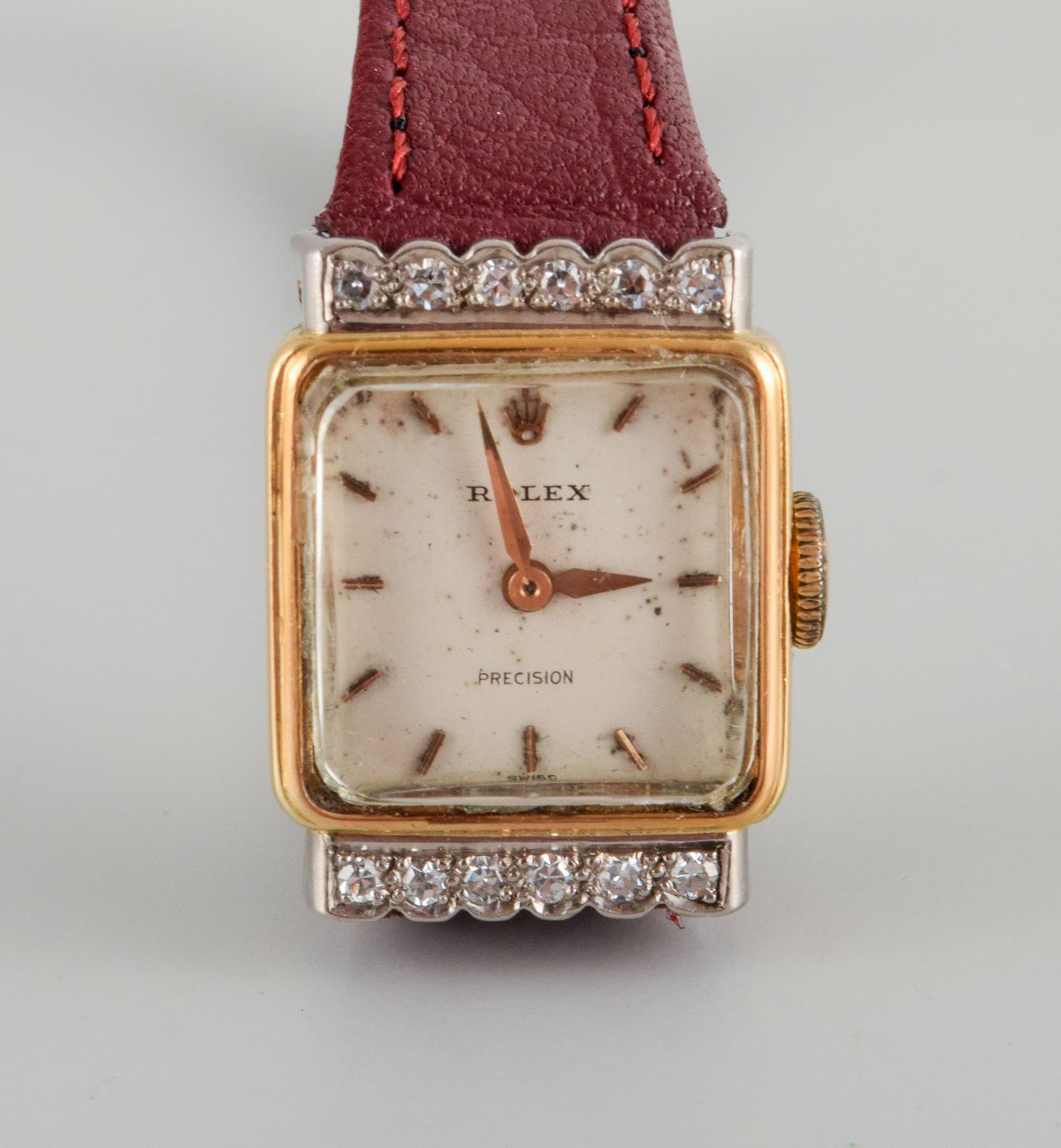 Rolex, Precision. 18 karat guld dame-armbåndsur isat tolv diamanter.