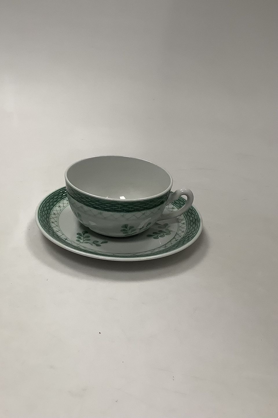 Royal Copenhagen Grøn Tranquebar Thekop med underkop No 957. Måler Kop: 5,5 cm x 10 cm dia. Underkop: 16 cm