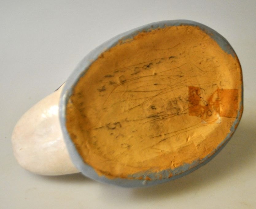 Sparbüche in Form einer Ente, Dänemark des 19. Jahrhunderts. Ton - kaltbemalt mit Weiß, Grau, Schwarz und Gelb. H.: 11 cm.