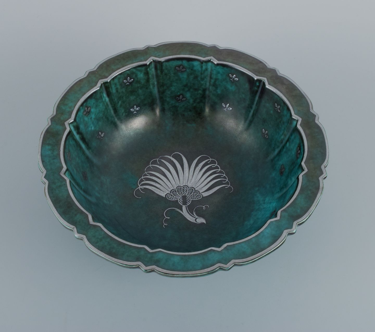 Wilhelm Kåge, Gustavsberg, Art Deco Argenta skål dekoreret med sølvindlæg.