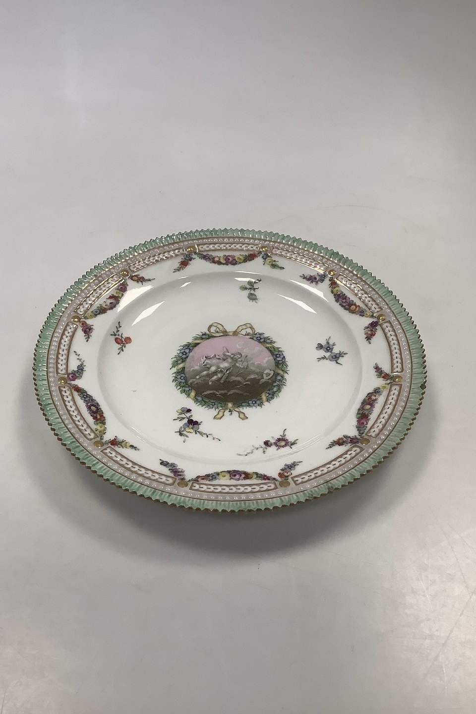 13 Royal Copenhagen Spisetallerkener Holsten-Gottorp Stellet fra 1783 ( Flora Danica Perlestel )