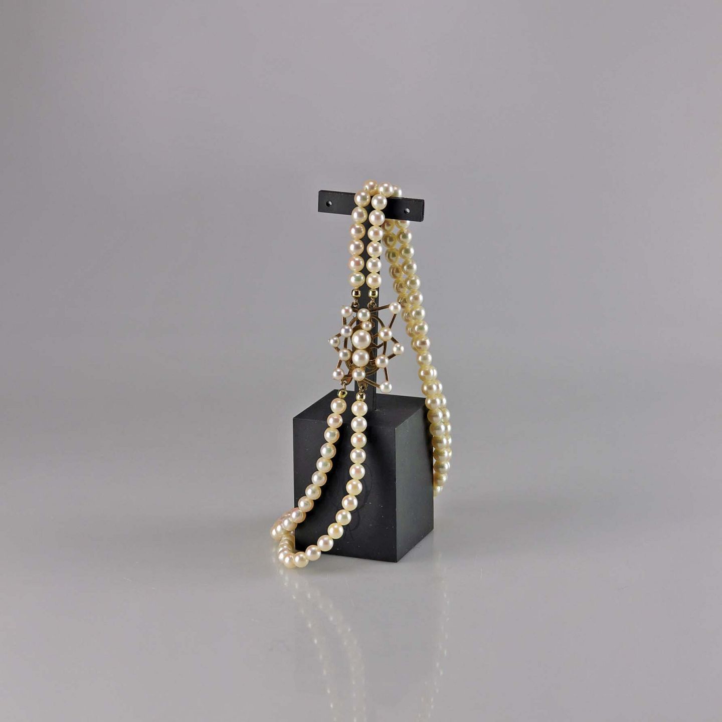 To strenget perlekæde med lås i 14 karat guld og perler sat som stjernetegnet Krebsen