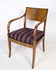Et par armstole i håndpoleret mahogni af dansk empire stil med stribet stof fra omkring 1920'erne.