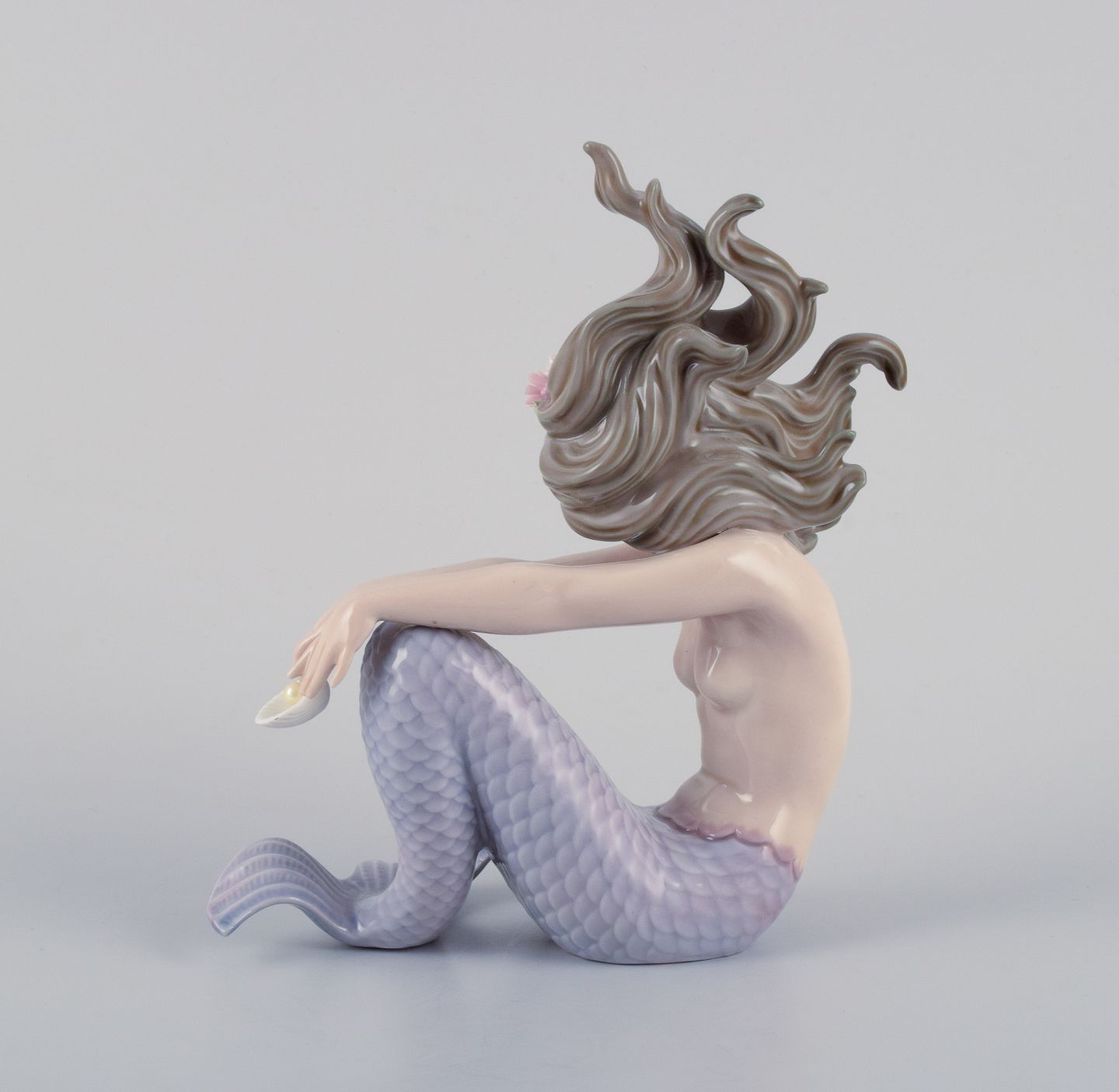Text zugänglich auf Dänische: Lladro, Spanien, håndlavet porcelænsfigur af siddende havfrue.
