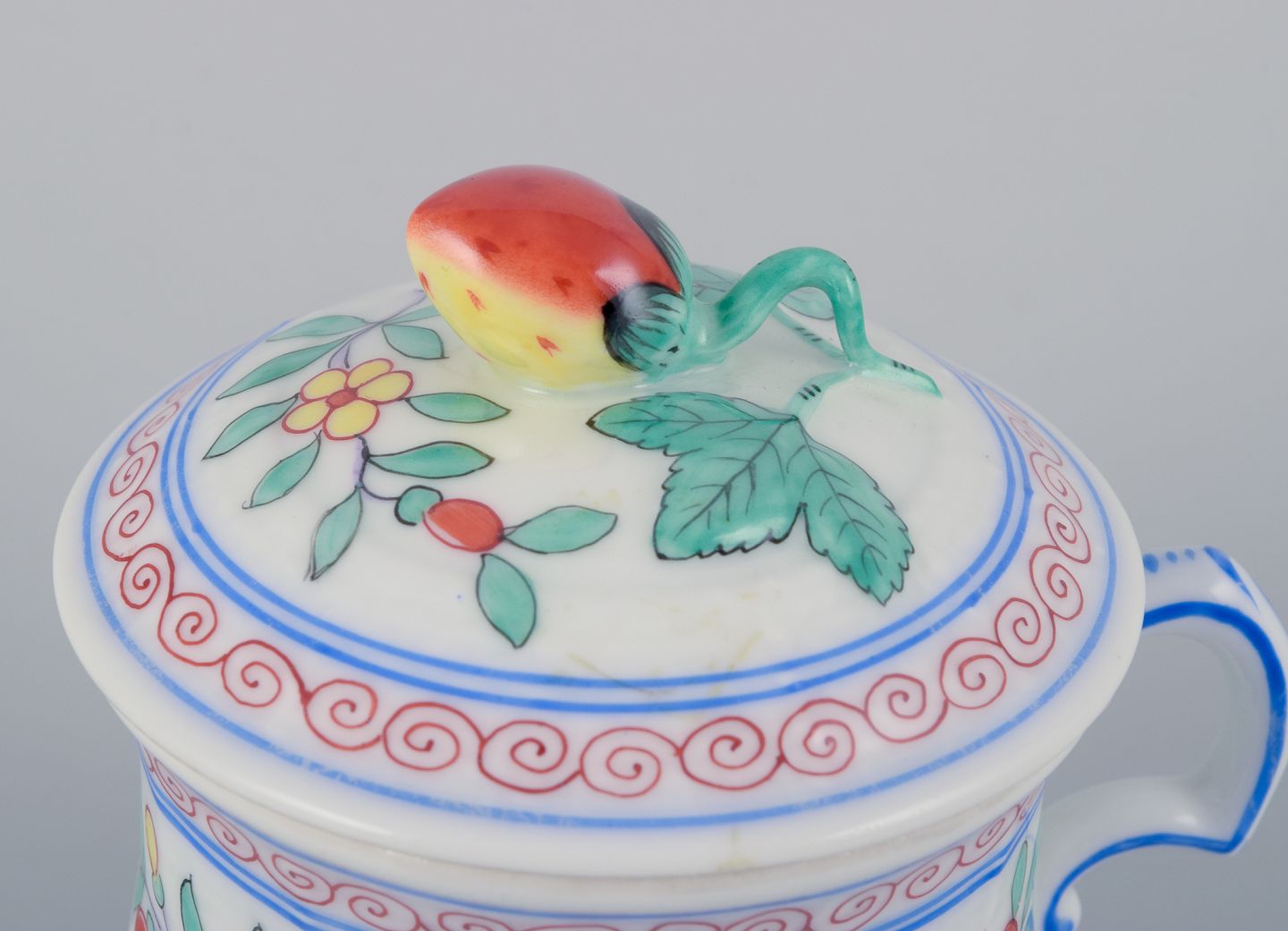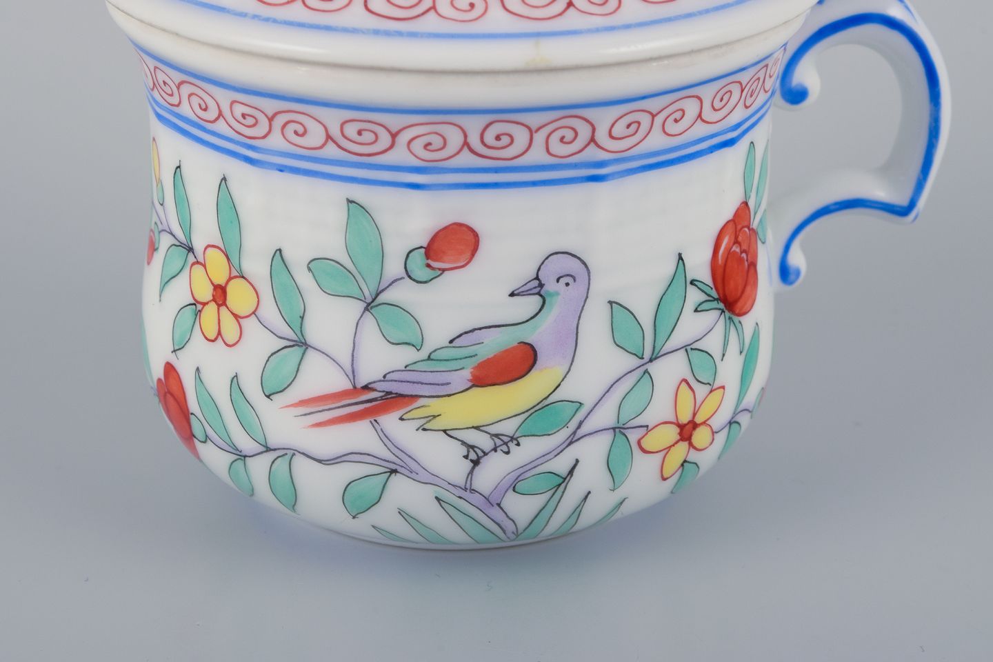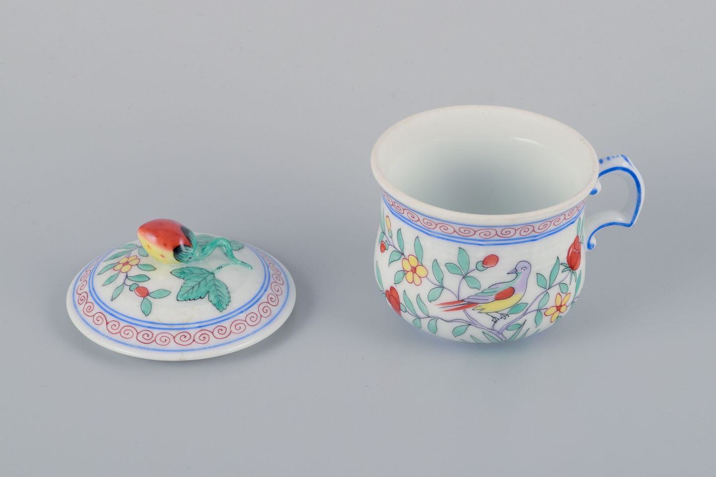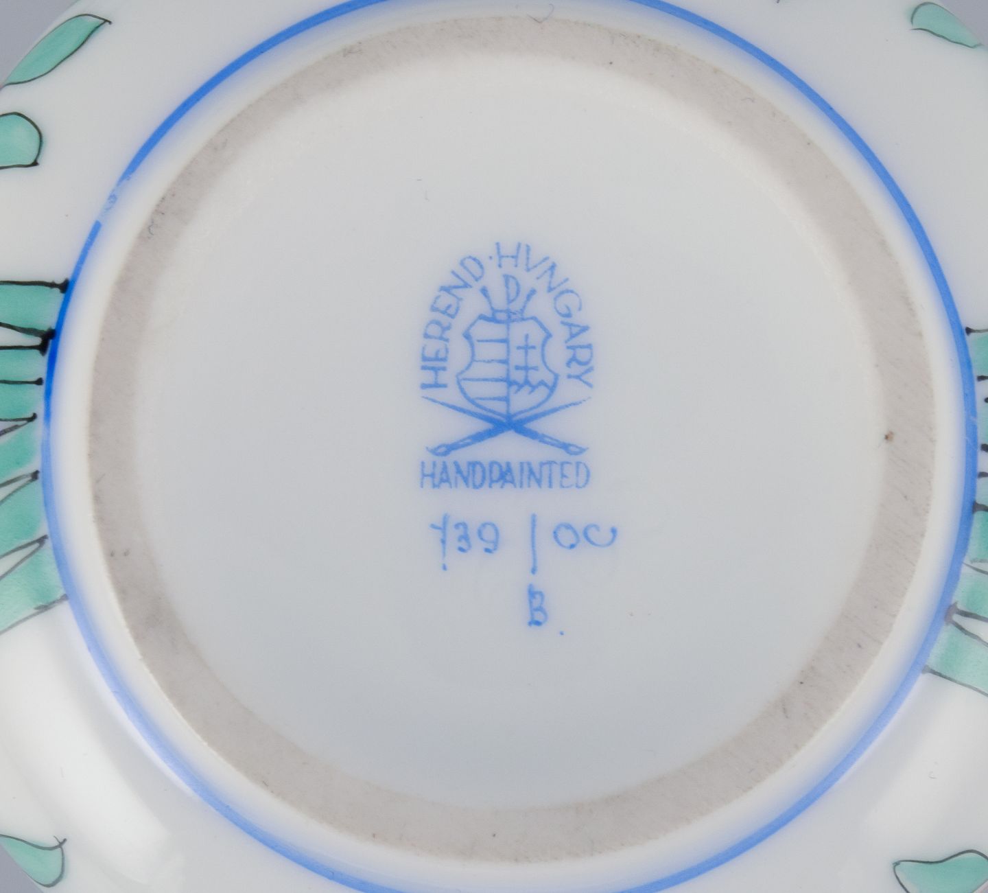 Text zugänglich auf Dänische: Herend, Ungarn, to bouillonkopper i porcelæn, håndmalet med blomster og fugle.
