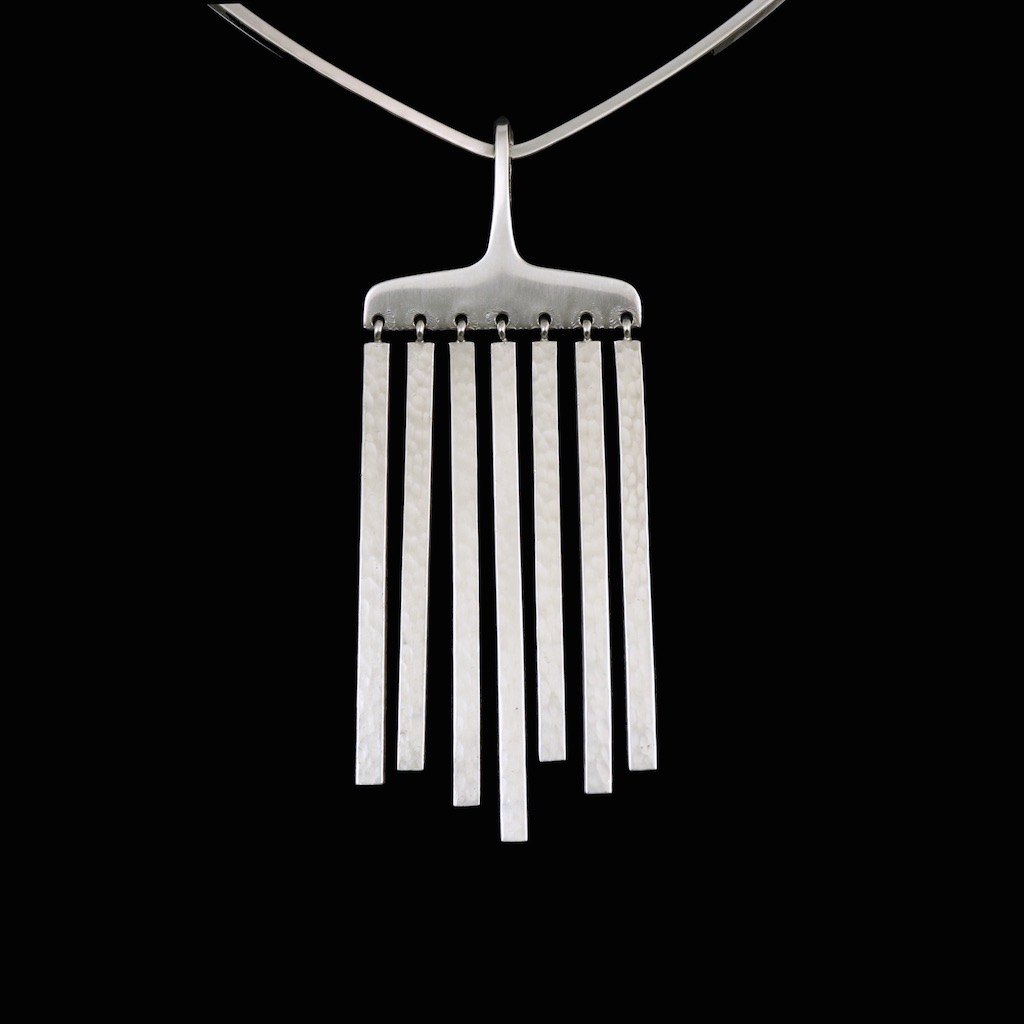 Text zugänglich auf Dänische: Hans Hansen. Halsring i sterling sølv med hammerslået vedhæng - Bent Gabrielsen.