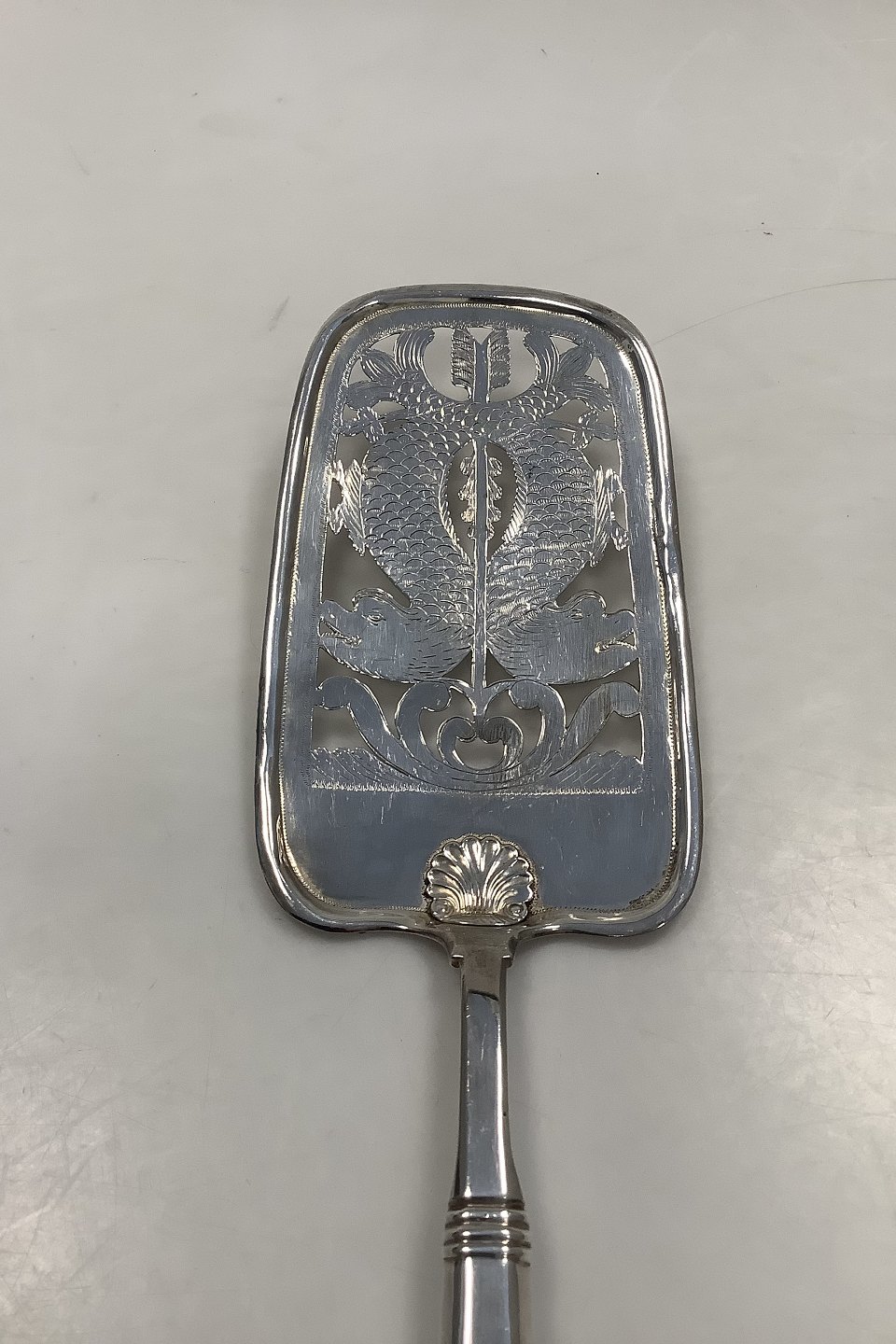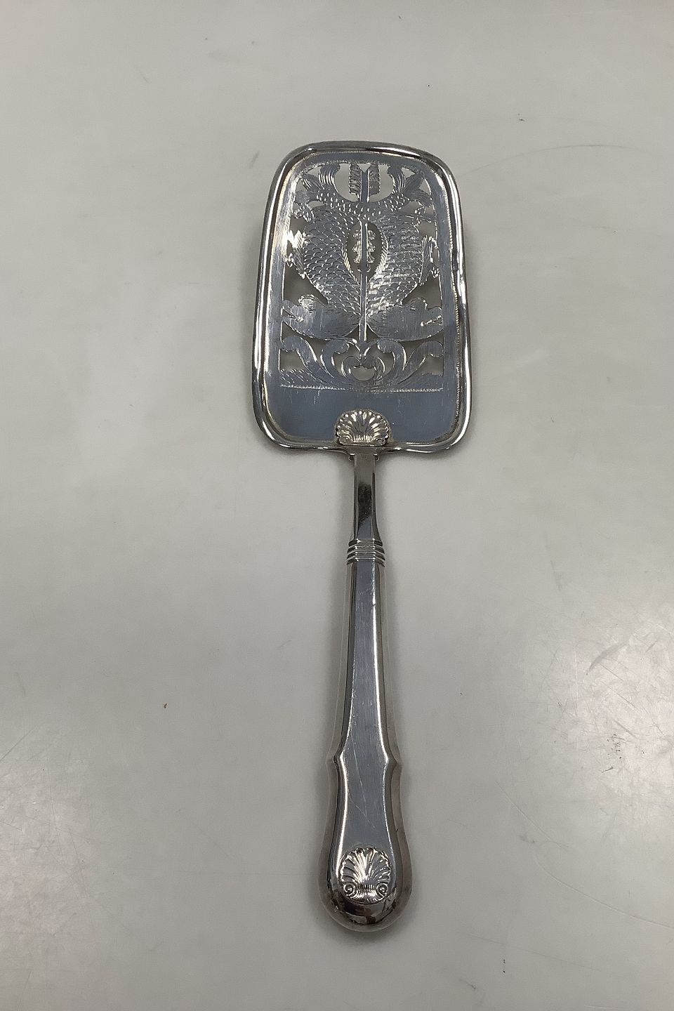 Dansk Sølv Stor Fiskespade i Musling fra Lamotte i 1895