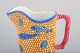 Vietri, Italien, fire store krus og stor kande i keramik. Fisk og skaldyrsmotiver. Mosaik lignende dekoration.