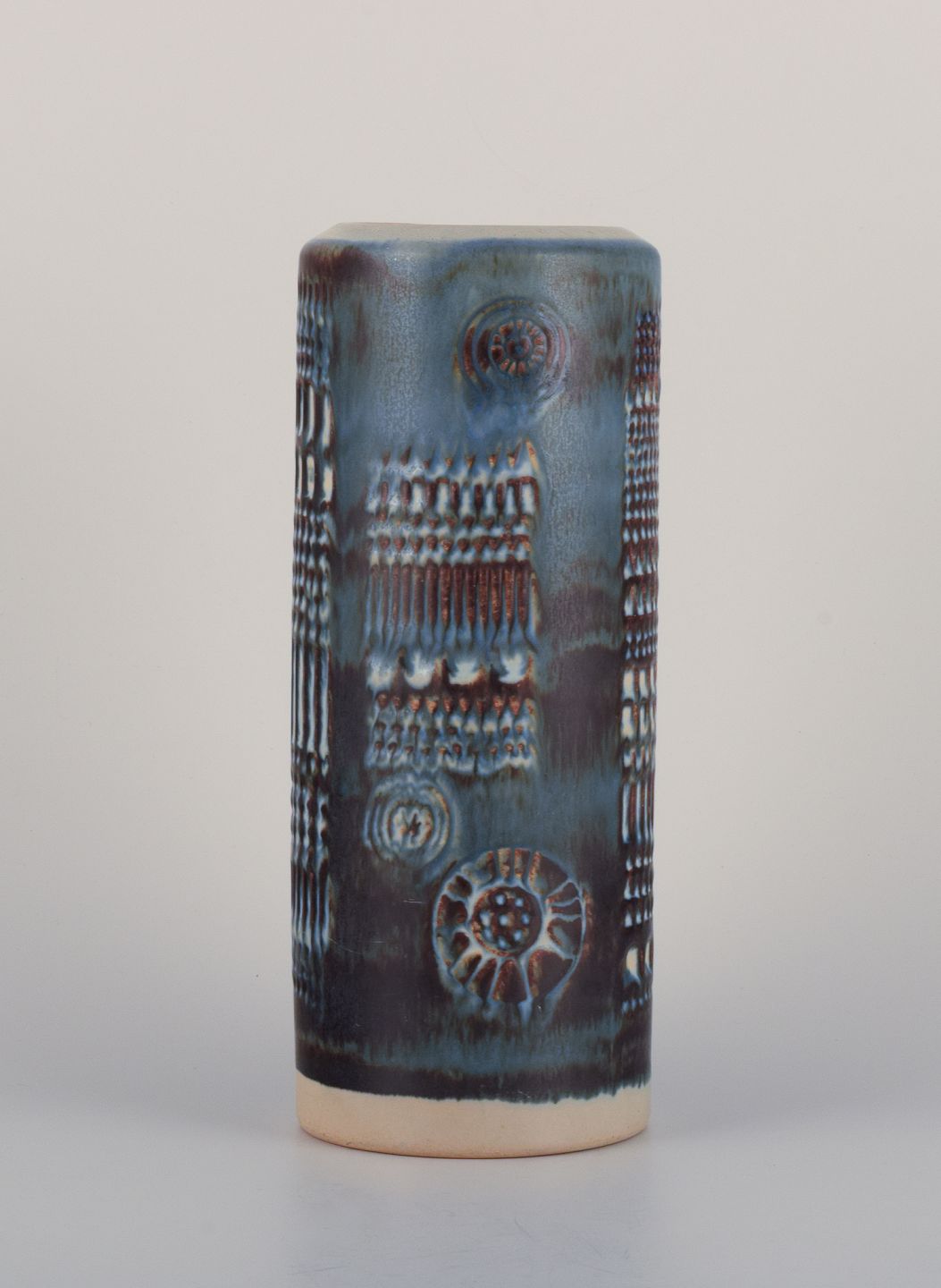 Olle Alberius for Rörstrand, Sverige. ”Kraka” keramikvase i modernistisk stil med glasur i blå og brune toner.