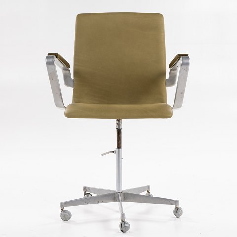 AJ 3291 - Nybetrukket 'Oxford'-kontorstol i nyt grønt, børstet anilinlæder (Dunes, farve: Racing Green).