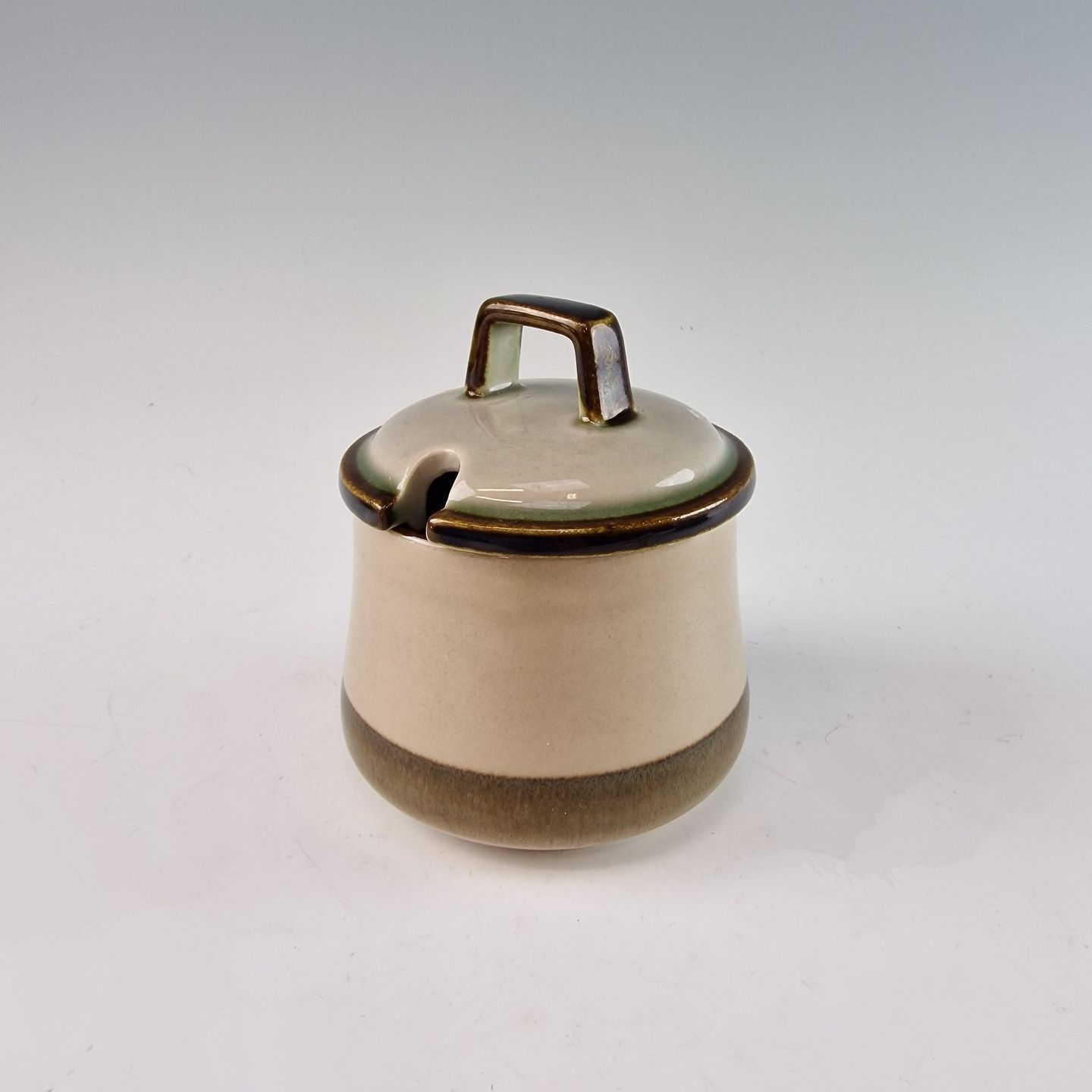 Text zugänglich auf Dänische: Lågkrukke med hul til ske fra stellet Tema. No 583