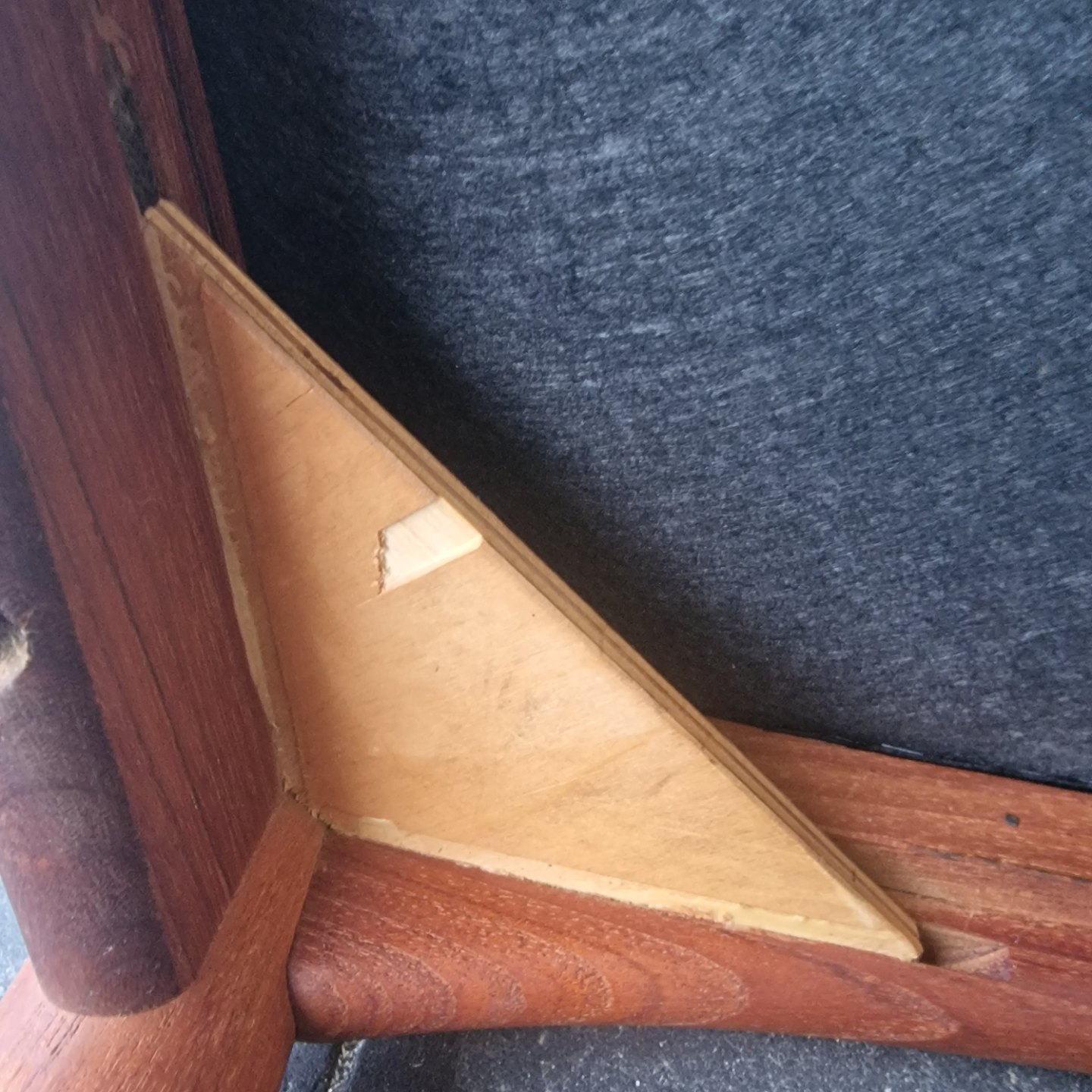 4 stk nypolstrede spisebordsstole af teaktræ og sæde af læder.