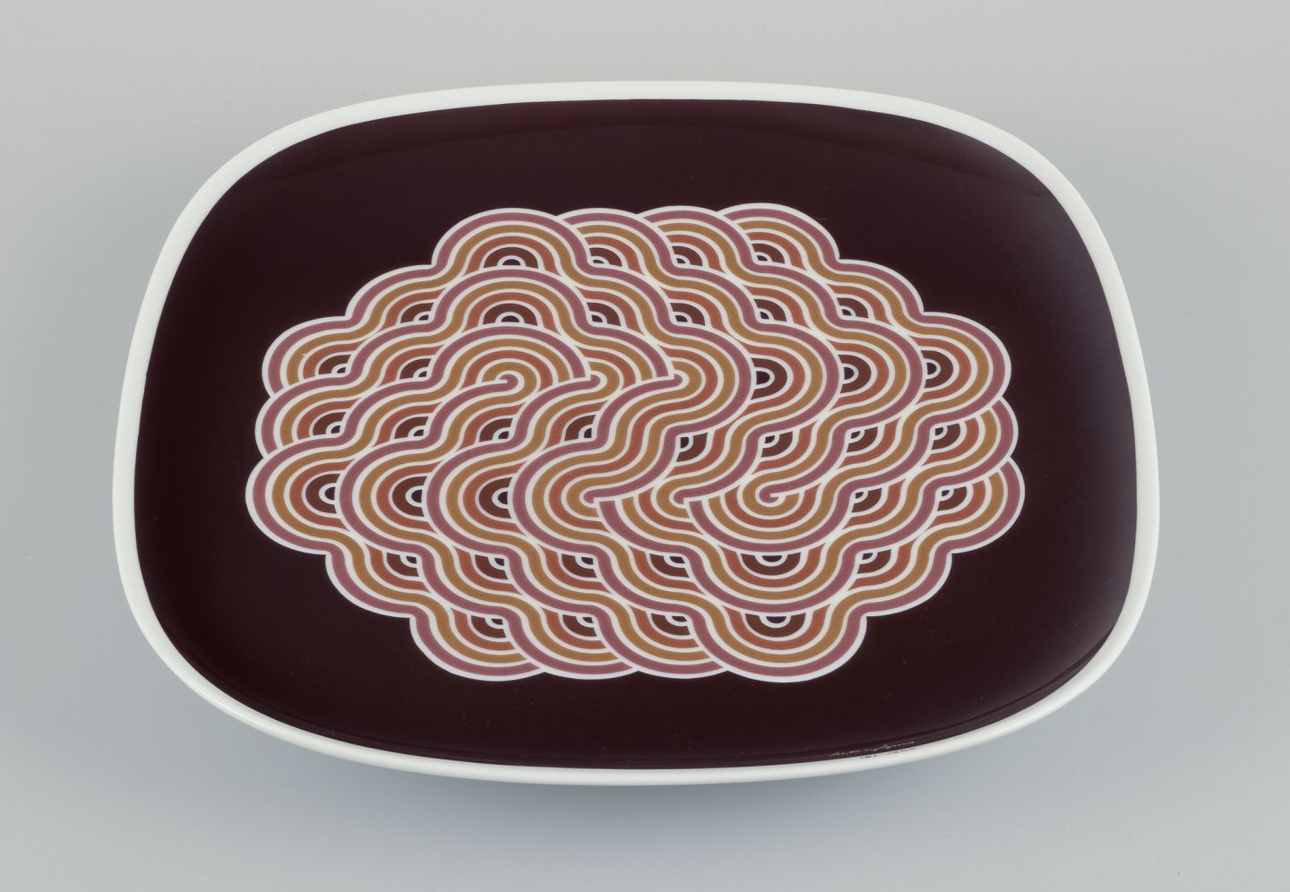 Stort firkantet fad i porcelæn. Geometrisk mønster.