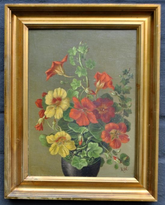 Westphal, Anna (1868 - 1950) Dänemark: Blumen in einer Vase. Öl auf Leinwand/Platte. Unterzeichnet. 26,5 x 19,5 cm.