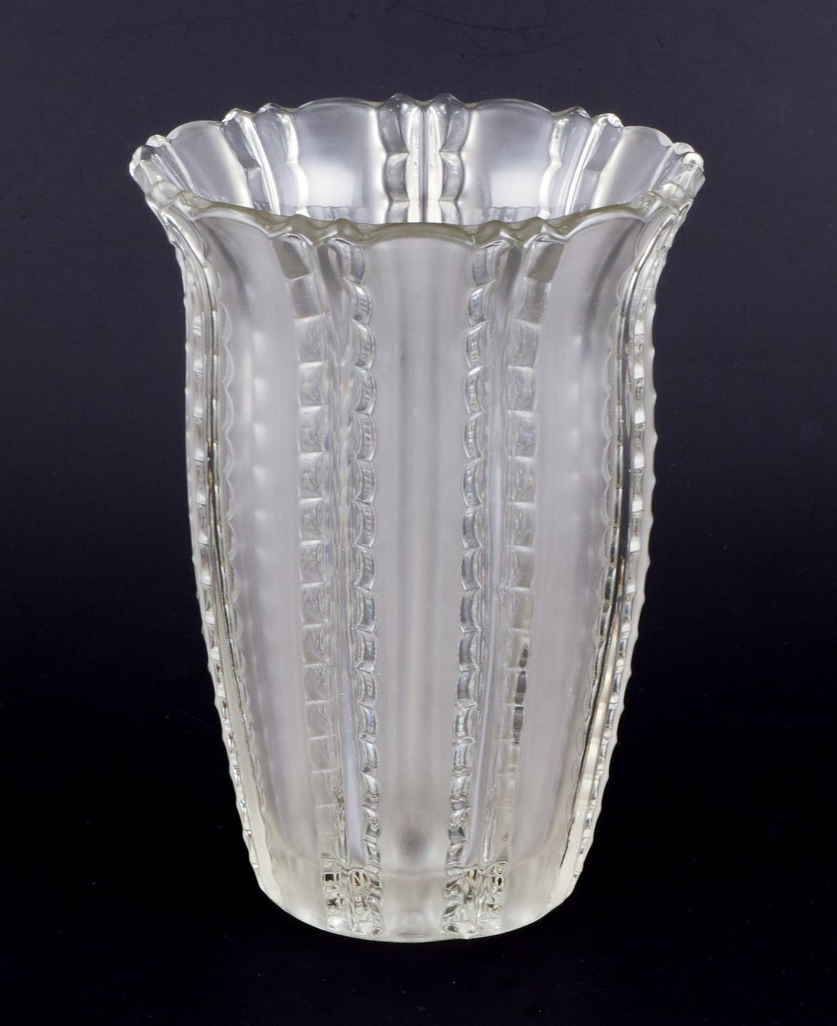 Text zugänglich auf Dänische: René Lalique (1860-1945), Frankrig. Stor Art Deco kunstglasvase i matteret og klart glas. Tidlig model.