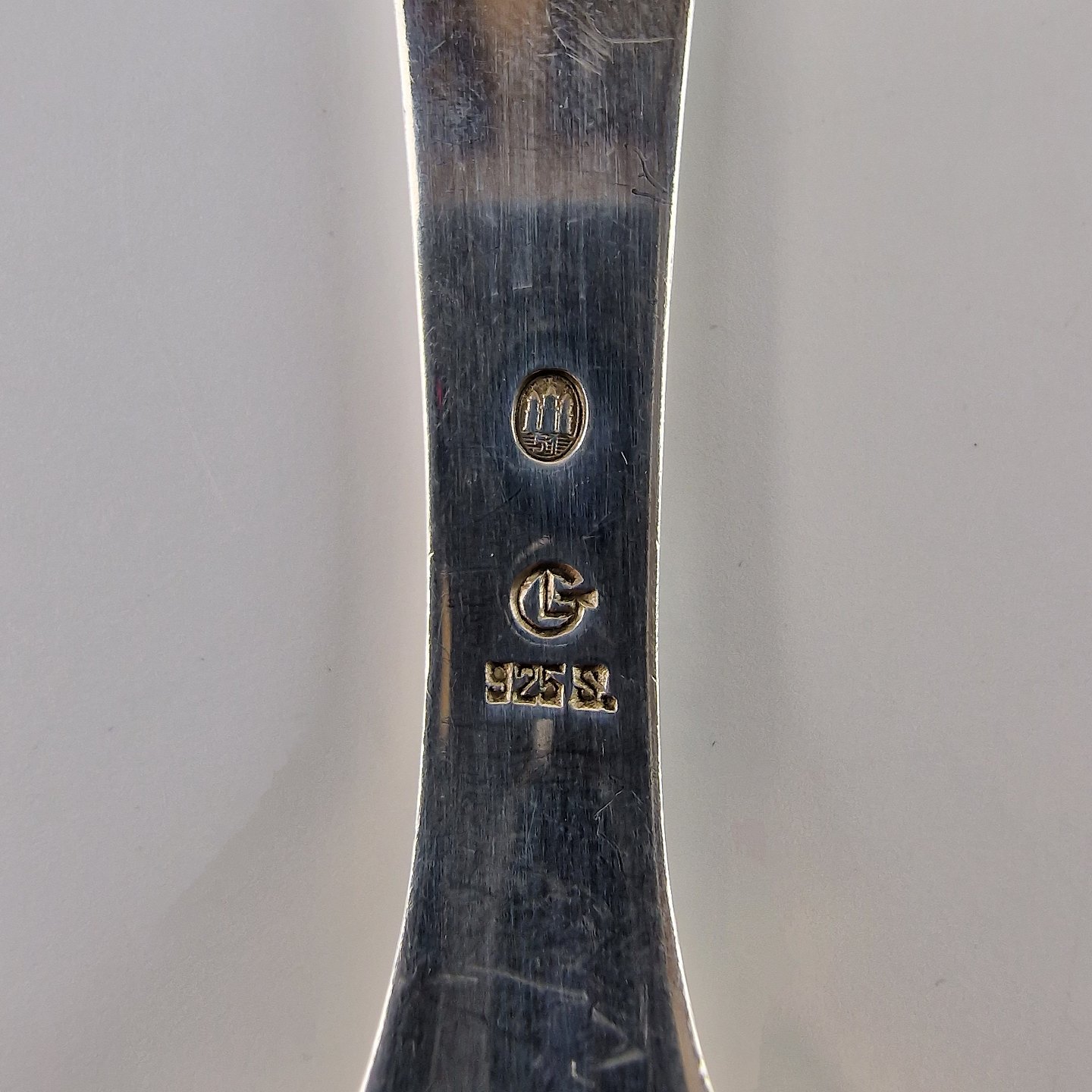 Tretårnet sølv ske. Mærket Jul 51. Motiv med fugle og stjerner