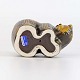 Figur i stentøj der forestiller en bjørn med beige, gule og brune striber fra serien Lillskansen (Zoo i Sverige)