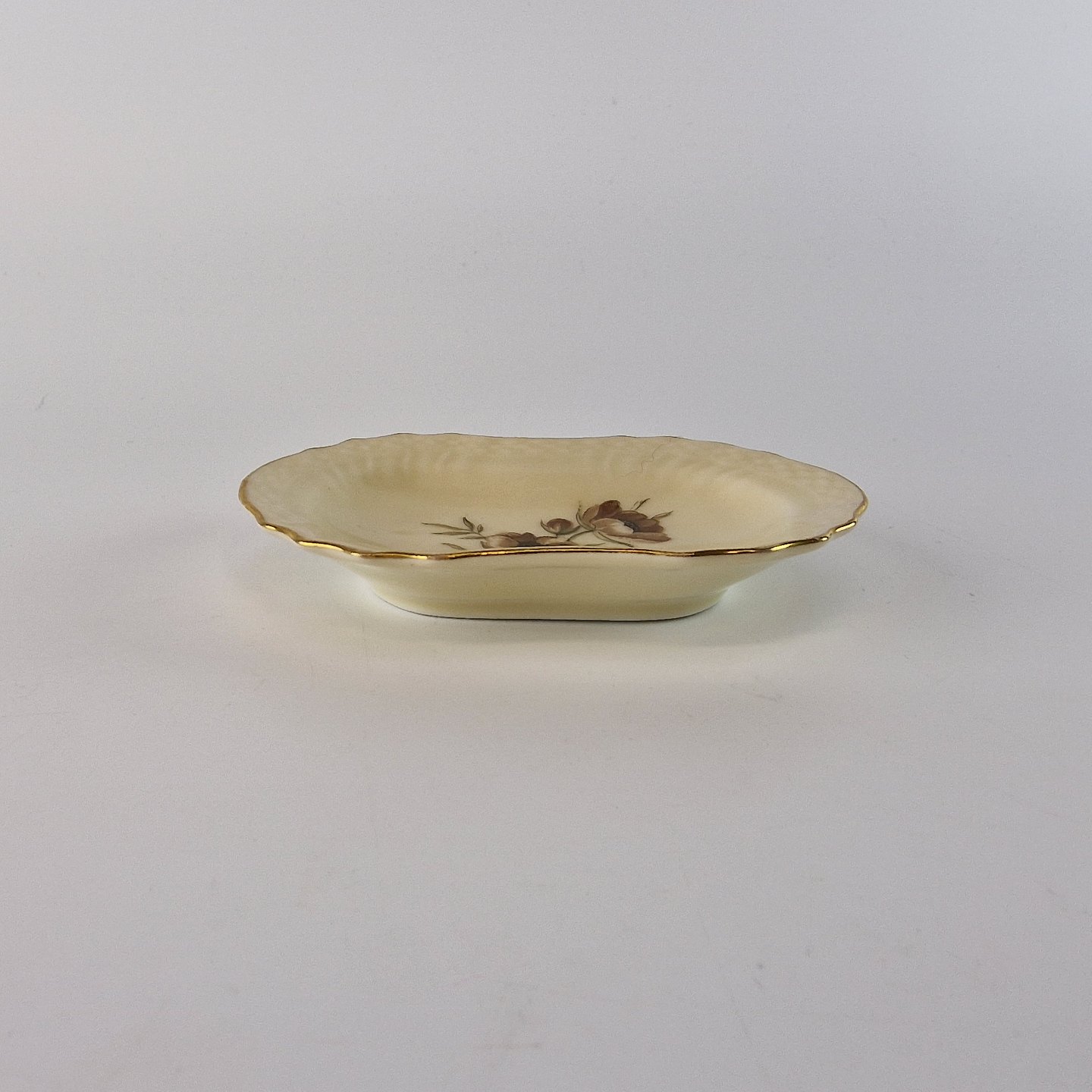 Frijsenborg har cremefarvet glasur og mangefarvede rokoko blomsterdekorationer, samt guldkant. Dette kaffe og spisestel er opkaldt efter den kendte herregård Frijsenborg ved Hammel som stammer fra 1672.