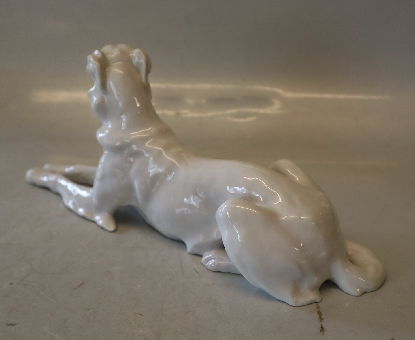 Bing & Grøndahl Hund B&G 1811 Liggende hvid mynde 12.5 x 29 cm Lauritz Jensen 1913 I fin og hel stand