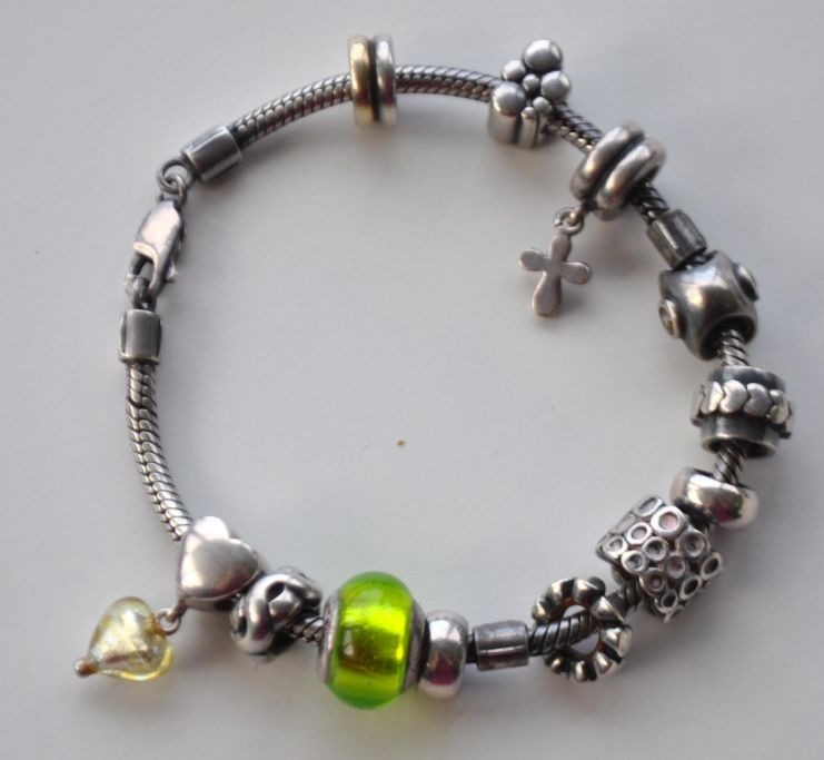 Aagaard-Silberarmband mit 12 Anhängern aus Silber und Glas. Dänemark des 20. Jahrhunderts. Gestempelt JAa, 925 und Lovelinks. L: 19,5 cm.