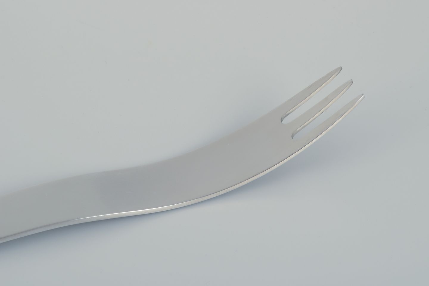 Text zugänglich auf Dänische: Arne Jacobsen for Georg Jensen. To lange salatgafler i rustfrit stål.