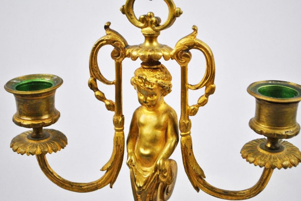 Französisch Leuchter in vergoldeter Bronze, 19. Jahrhundert. Mit zwei Armen. Dekoriert mit Cherub. Höhe:. 29,5 cm. B:. 18 cm.