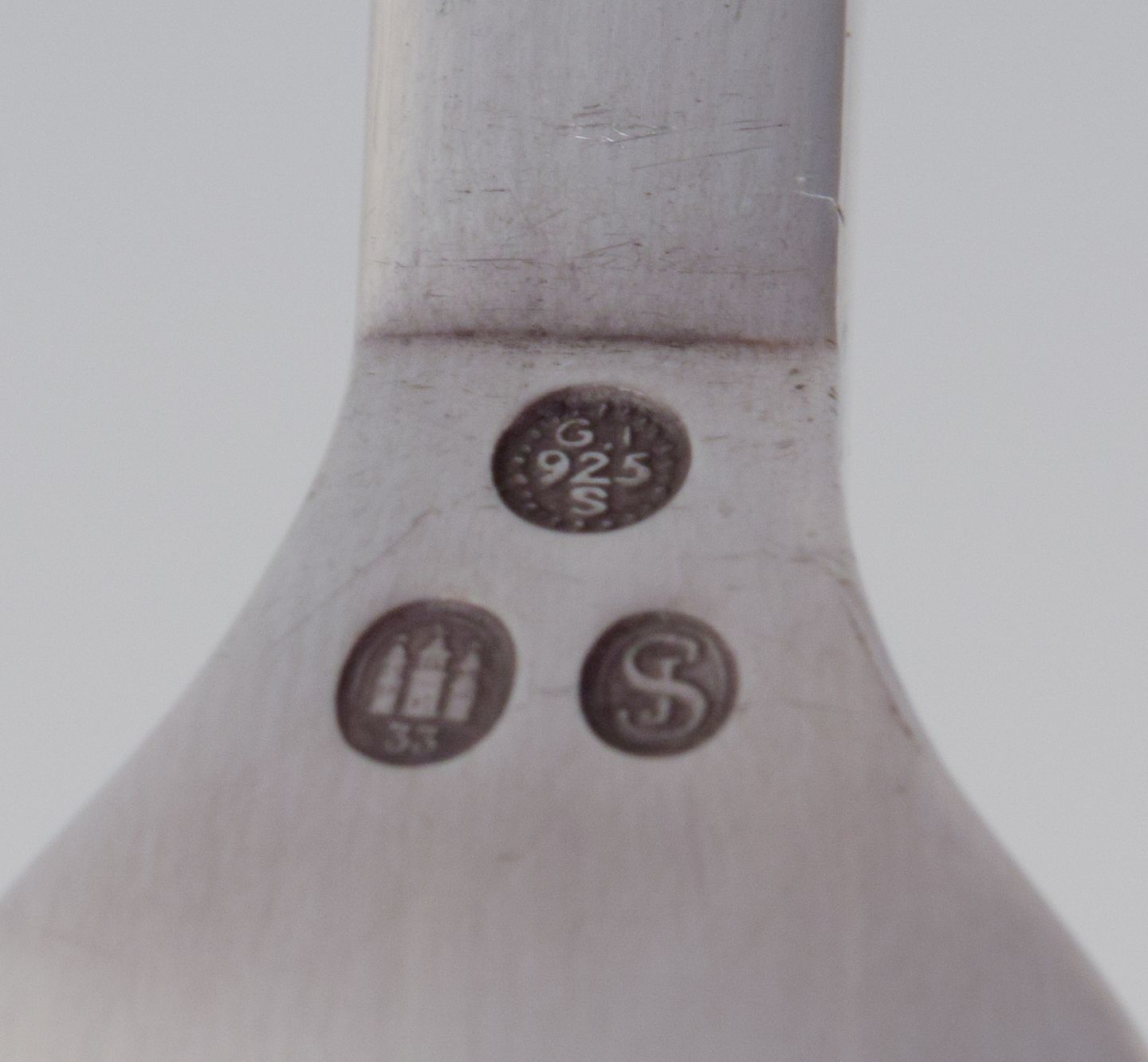 Georg Jensen Pyramide, seks frokostgafler i sterlingsølv.