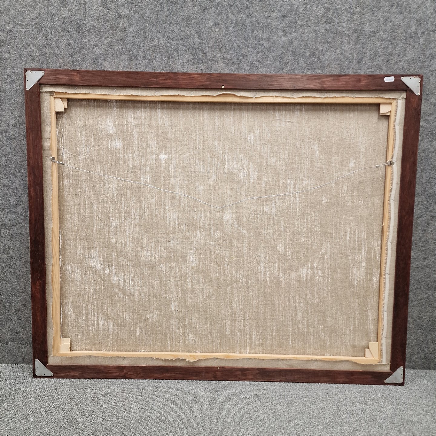 Oliemaleri på lærred med træramme. Landskabsmaleri med motiv af eng med viber stående i forgrunden