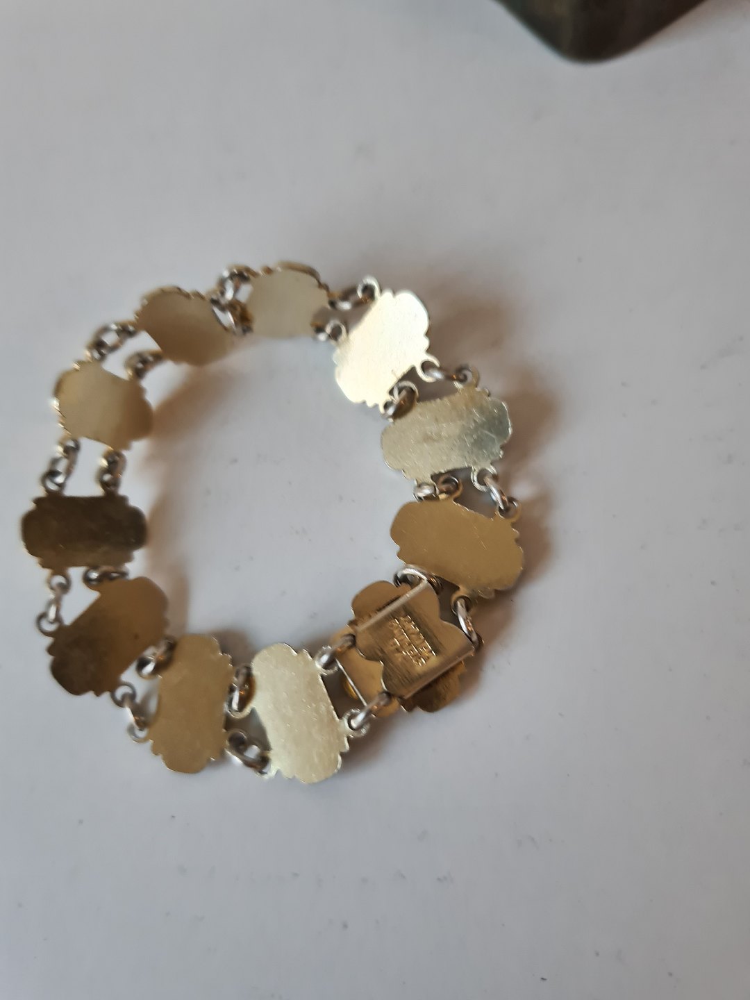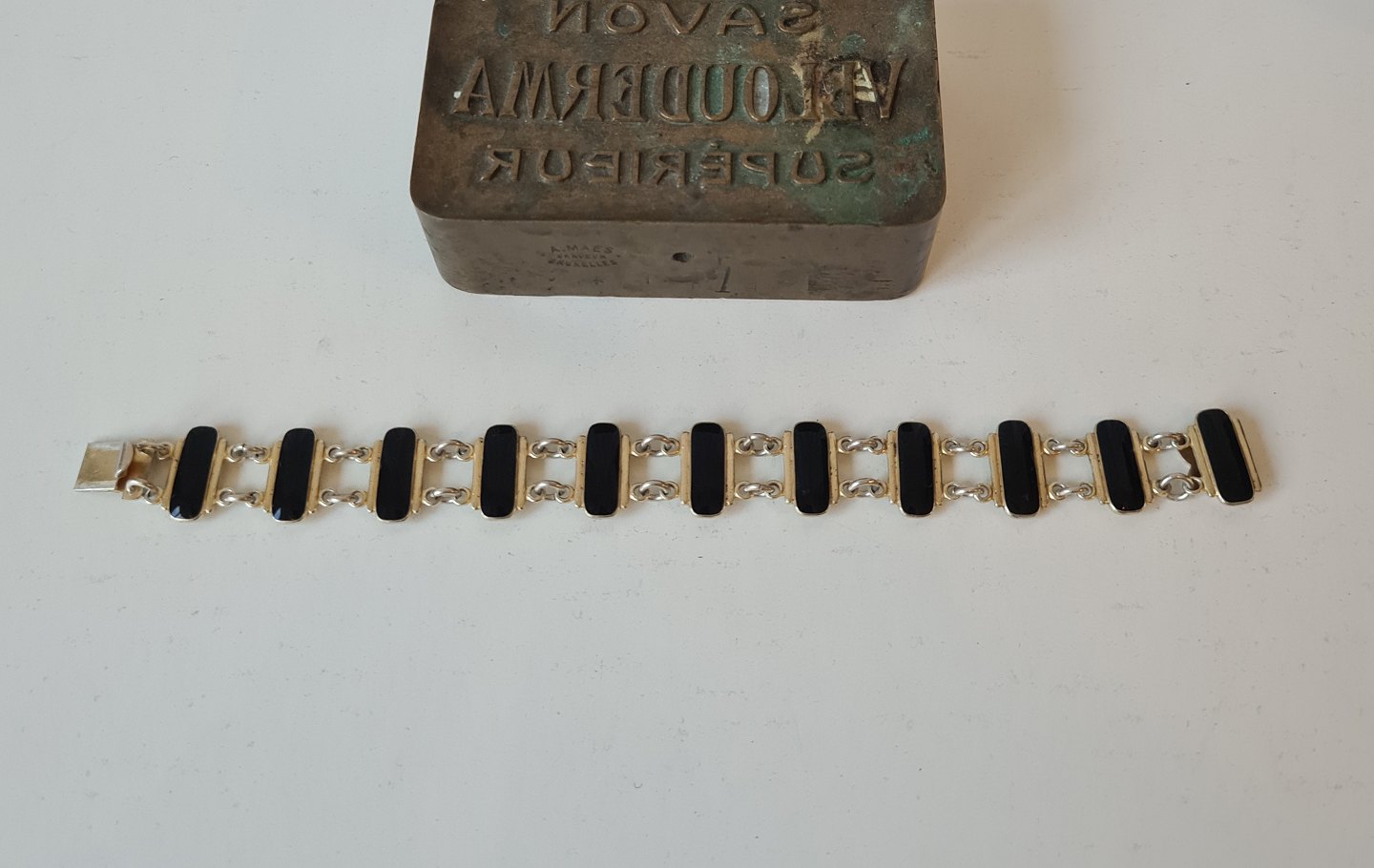 Text zugänglich auf Dänische: Armbånd i forgyldt sterlingsølv og sort emalje af Volmer Bahner
