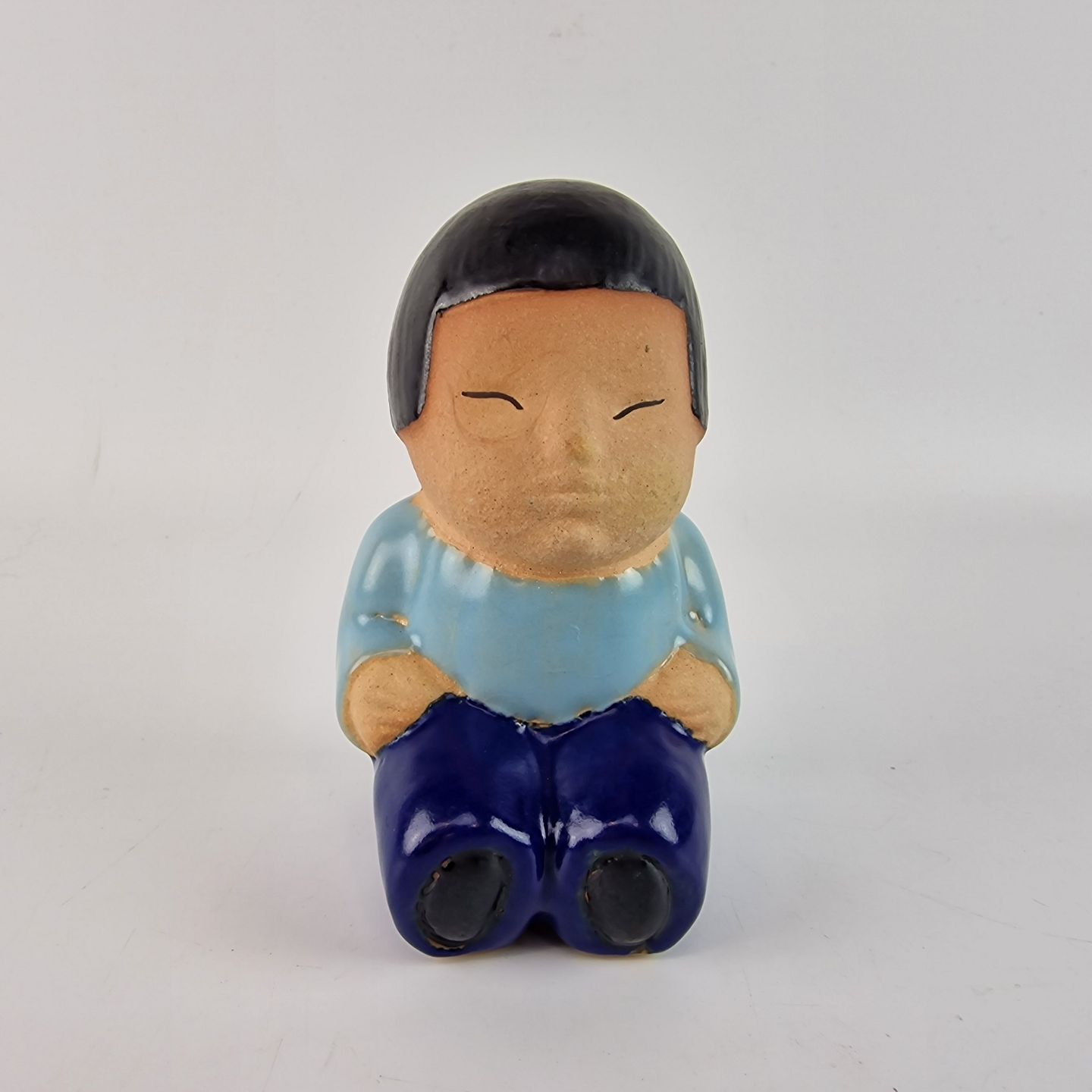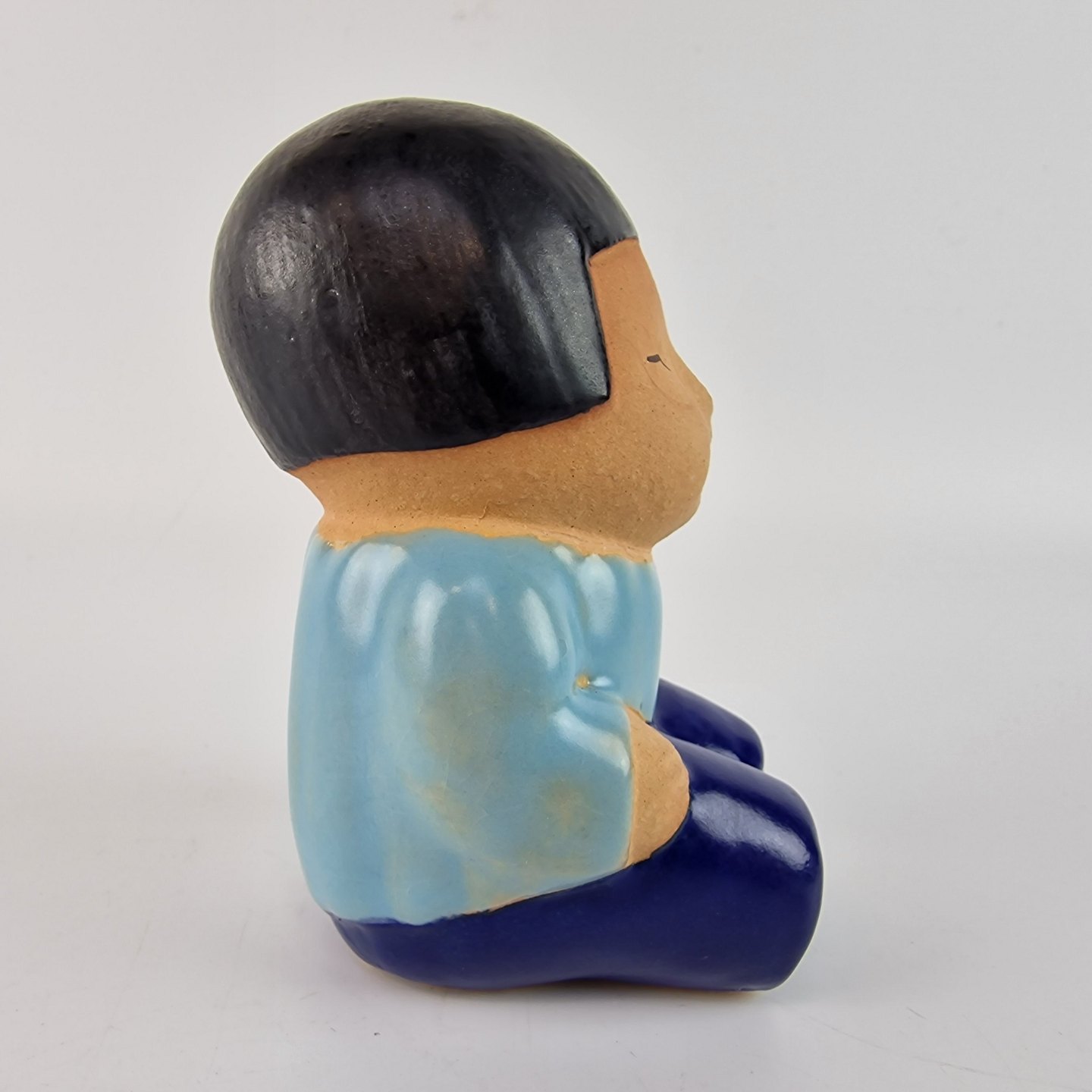 Keramikfigur af en hånddekoreret siddende kinesisk pige med navnet Mei.
