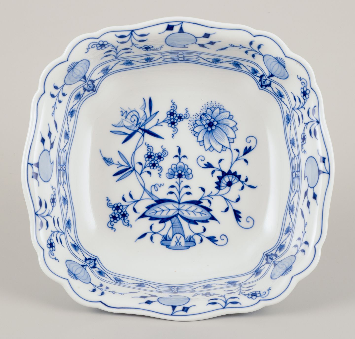 Meissen, Tyskland. Løgmønstret firkantet skål.