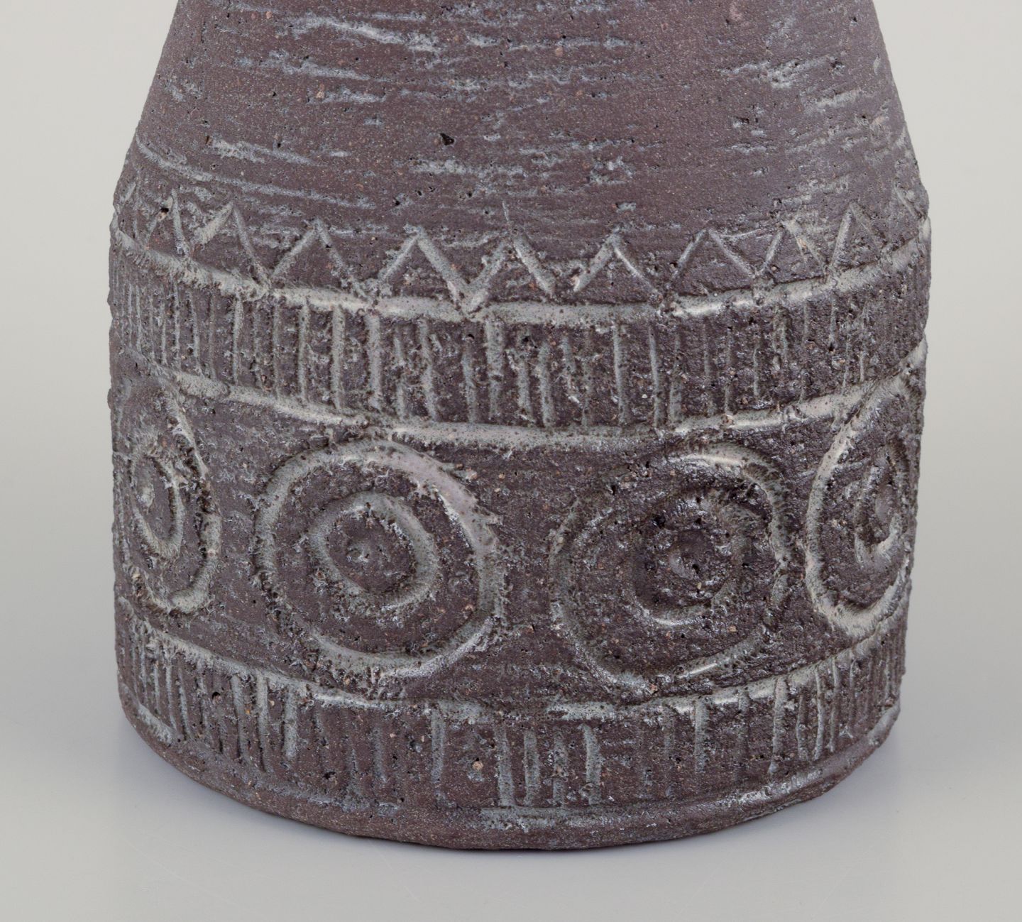 Keramikvase. Uglaseret. Geometrisk mønster.