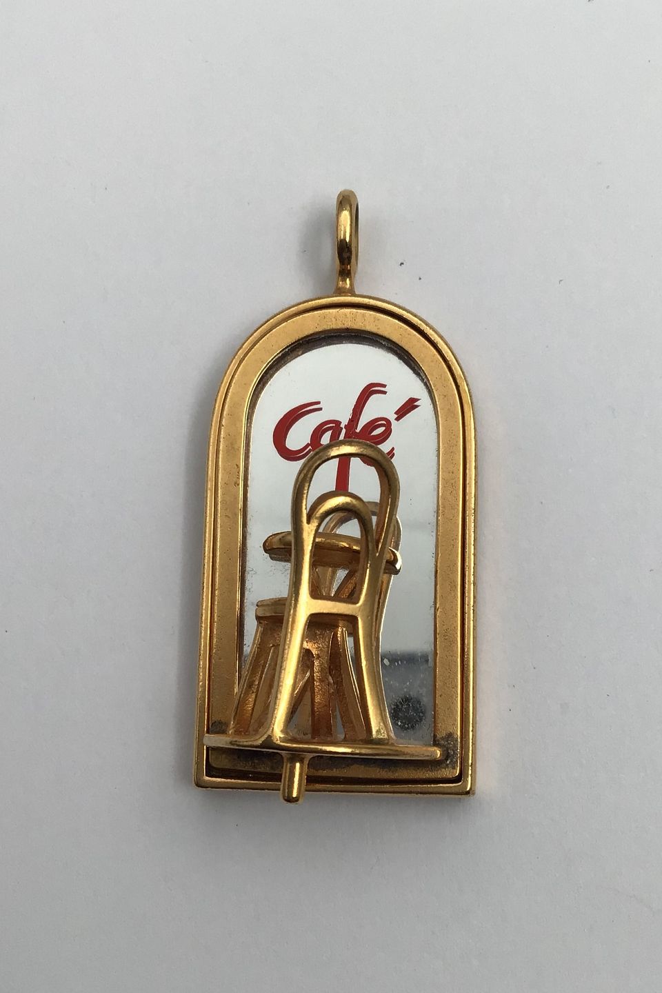 Georg Jensen Forgyldt Messing Cafe Vedhæng No. 5201 Måler 5.5 cm x 2.5 cm (2.16 inch x 0.98 inch) Designet af Ole Bent Petersen