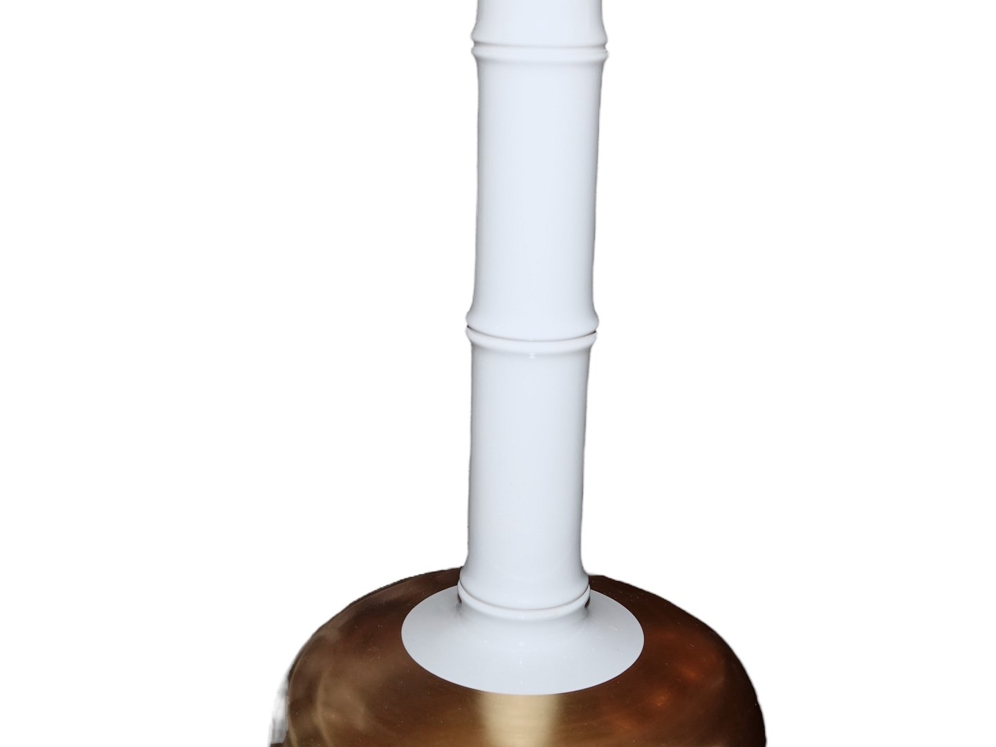 Royal Copenhagen Faience, tall table lamp in Tenera style decoration with gold edge and Le Klint shade. The lamp is shaped as a bamboo.