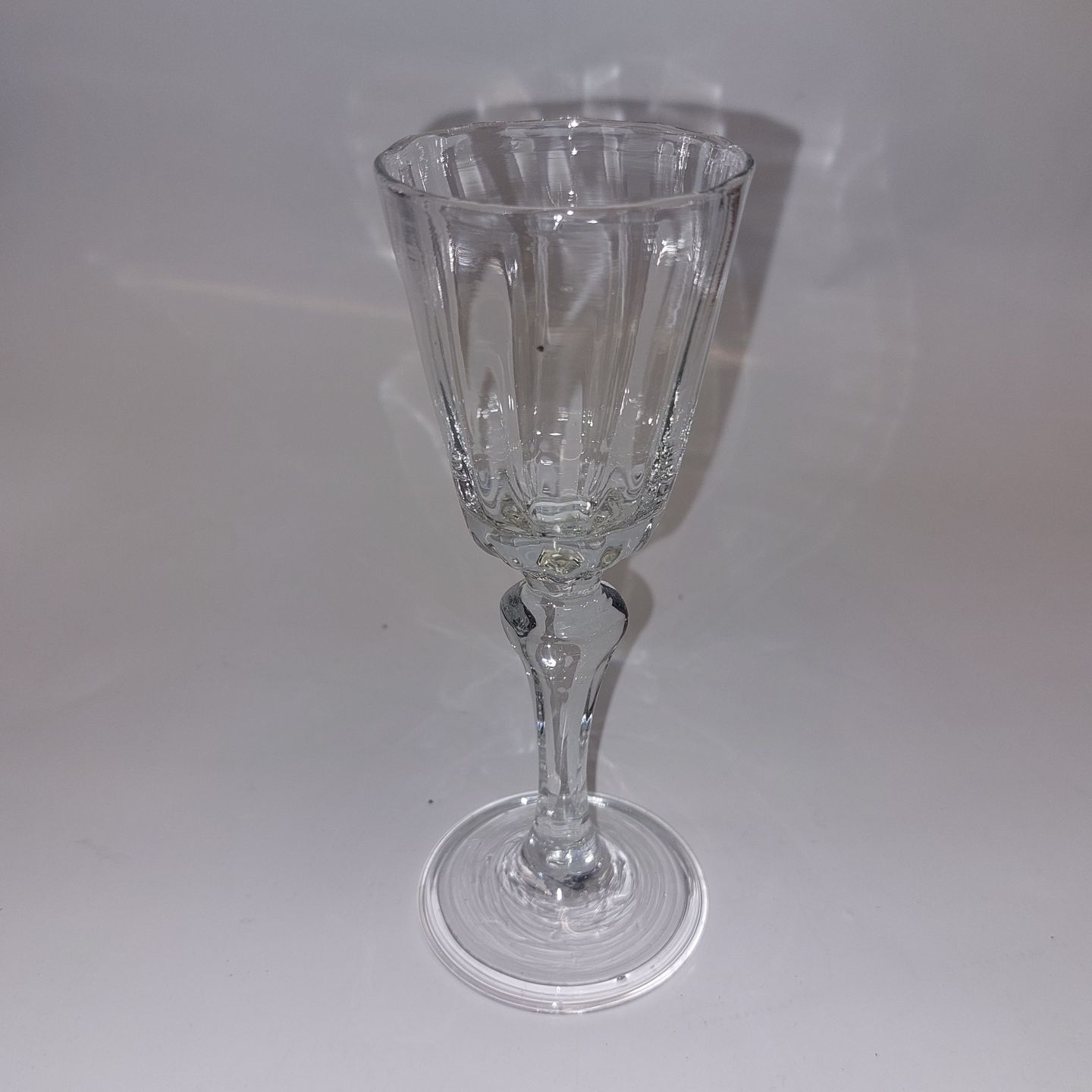 Vinglas 19. århundrede. Kummen optisk stribet. Kølleformet stilk og ombukket fod. Europædisk Glasværk fra omkring 1800. Fremstår I god stand uden skader eller reparationer. H. 15 cm
