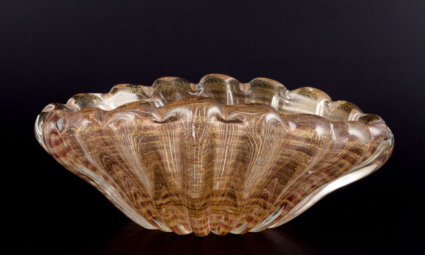 Stor rillet skål i kunstglas.