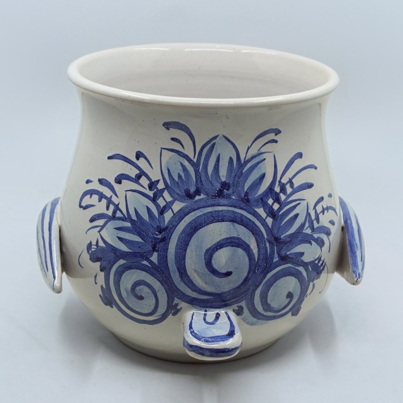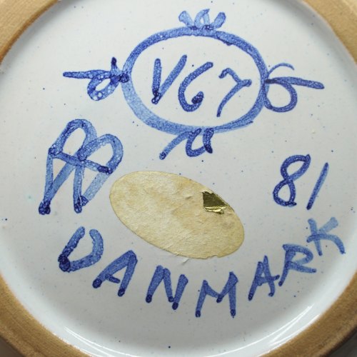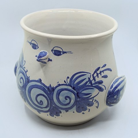 Bjørn Wiinblad; Blåmalet urtepotteskjuler, i form af fugl med næb, vinger og hale. Fremstår i hel og pæn stand.